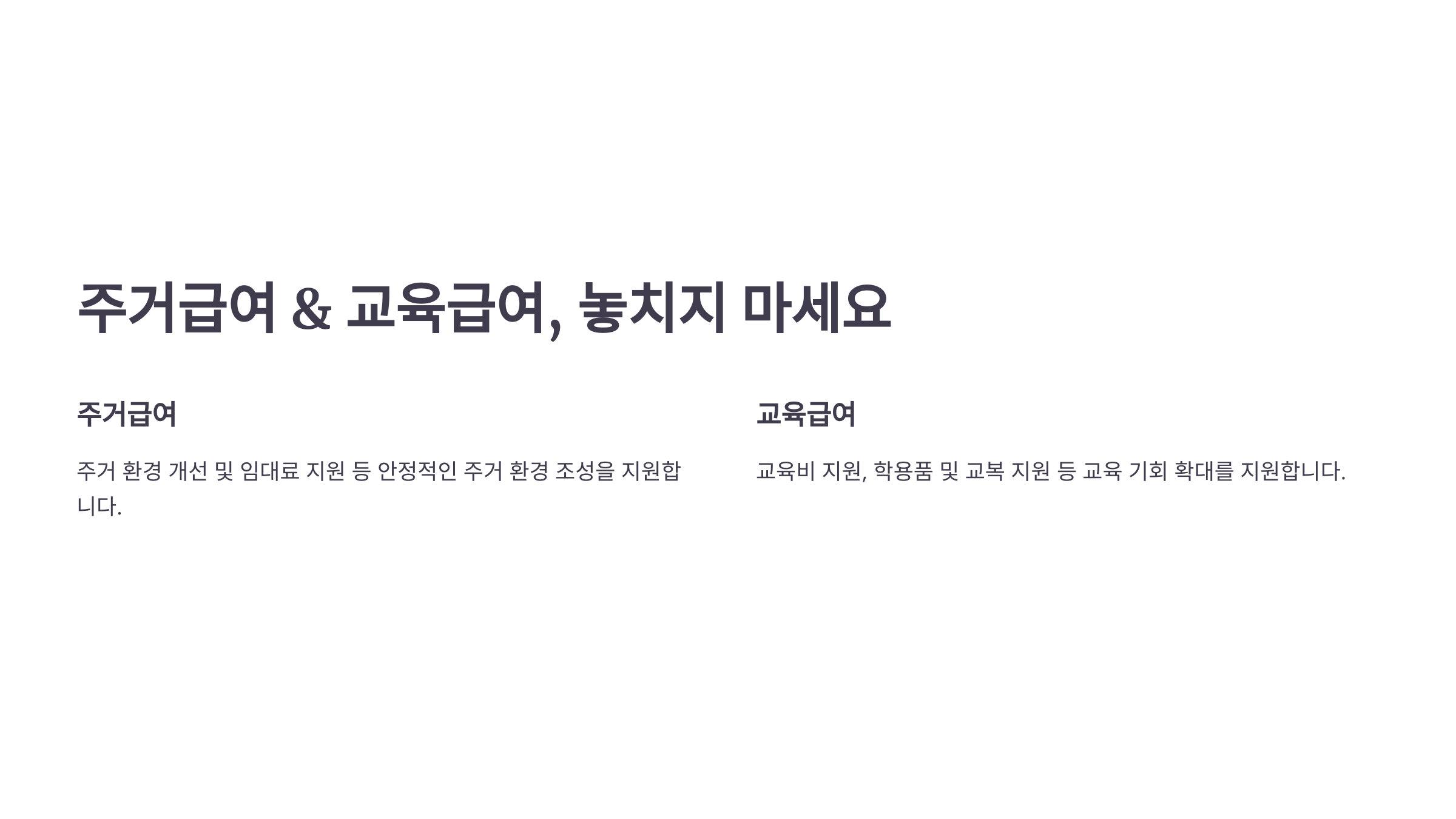 - 📖 교재비 지원: 초·중·고등학생 대상 교재비 지급