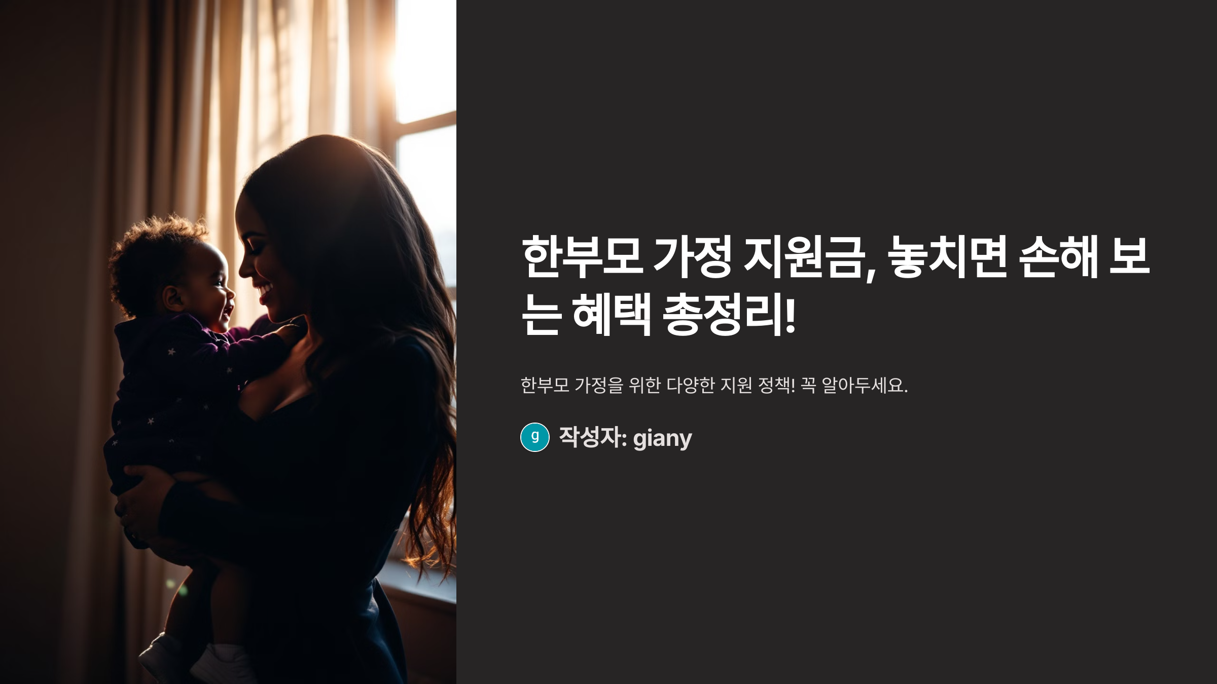 👩‍👧‍👦 한부모 가정 지원금, 놓치면 손해 보는 혜택 총정리!