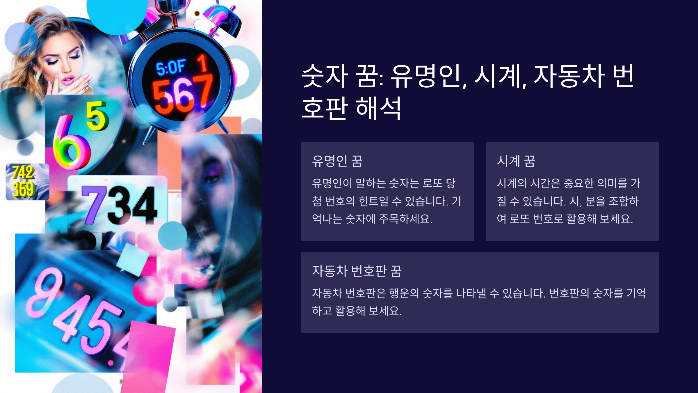 유명인이 말해준 숫자는 잠재의식에서 중요한 신호일 가능성이 커요. 이런 꿈을 꿨다면 꼭 번호를 기록해 두고 활용해 보세요! 😊