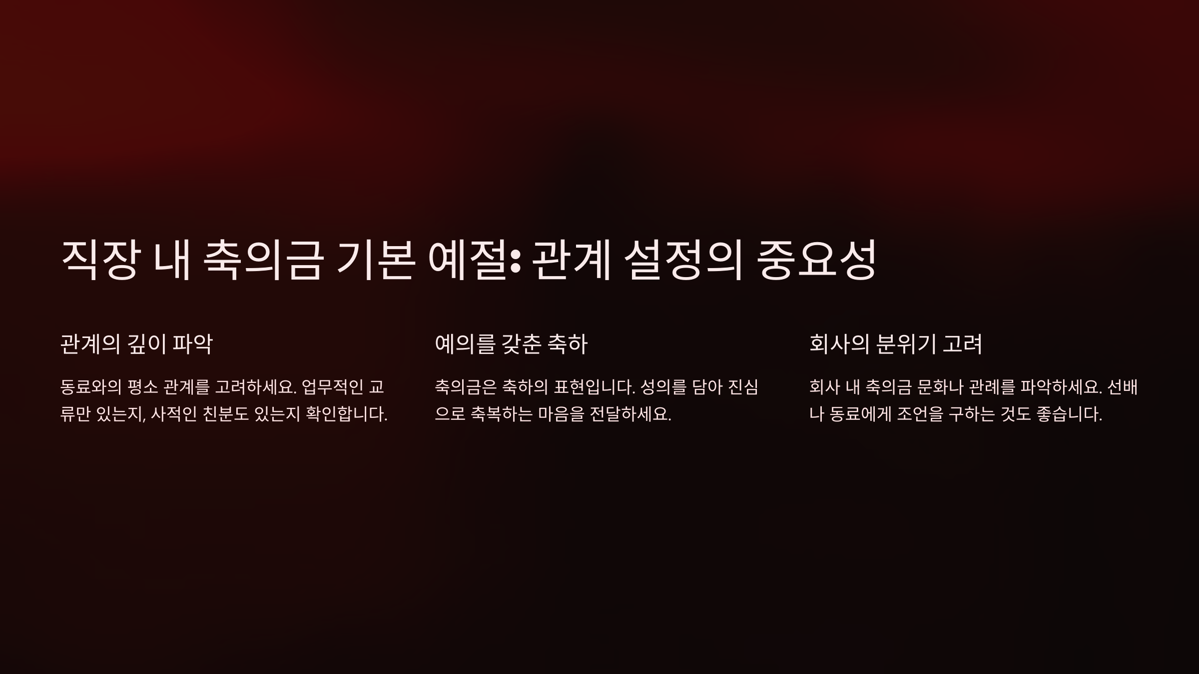 축의금은 단순히 금액이 아니라 상대방에 대한 마음을 전하는 의미도 있어요. 회사 분위기와 본인의 상황을 고려해 적절한 금액을 정하는 것이 중요하답니다. 😊