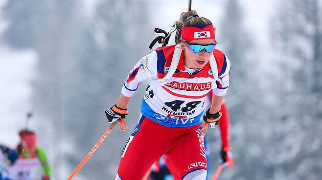 2018 평창 동계 올림픽 때 여자 15㎞ 개인 경기 16위에 올라 한국 여자 선수 최고 순위를 보유한 압바꾸모바는 아시안게임에서도 한국 바이애슬론의 새 역사를 썼습니다.