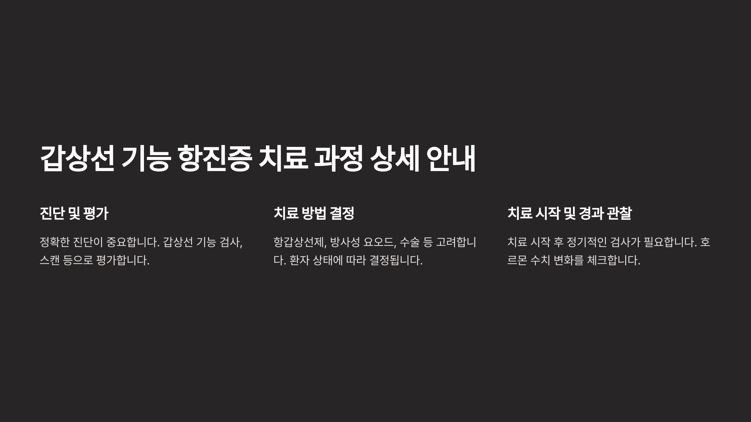 이 치료법은 갑상선 기능이 심하게 항진된 초기 단계에서 효과적이에요. 하지만 장기간 복용해야 하고, 재발할 가능성이 있기 때문에 다른 치료법과의 비교가 필요해요.