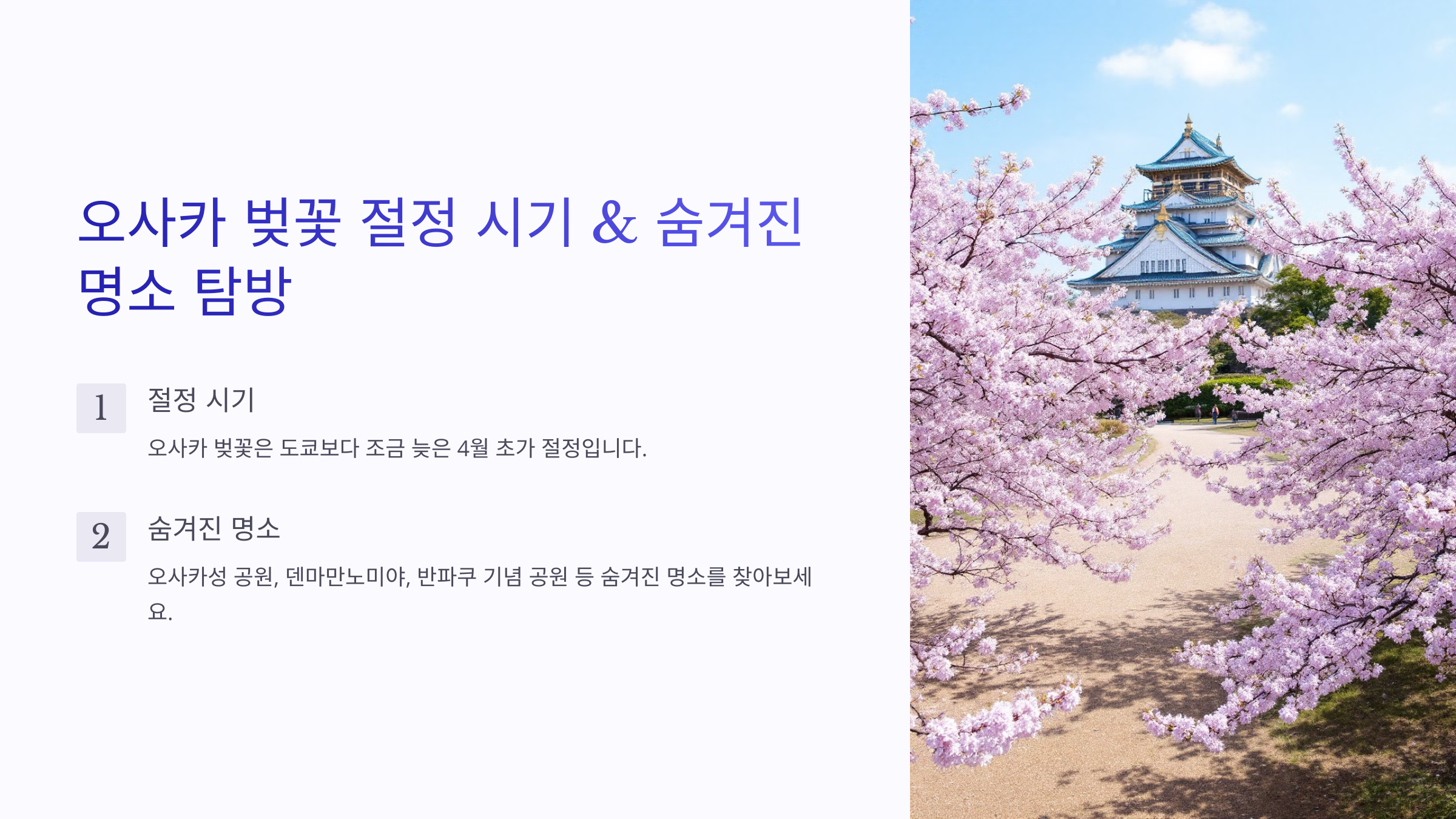 오사카 벚꽃 절정 시기 & 숨은 명소