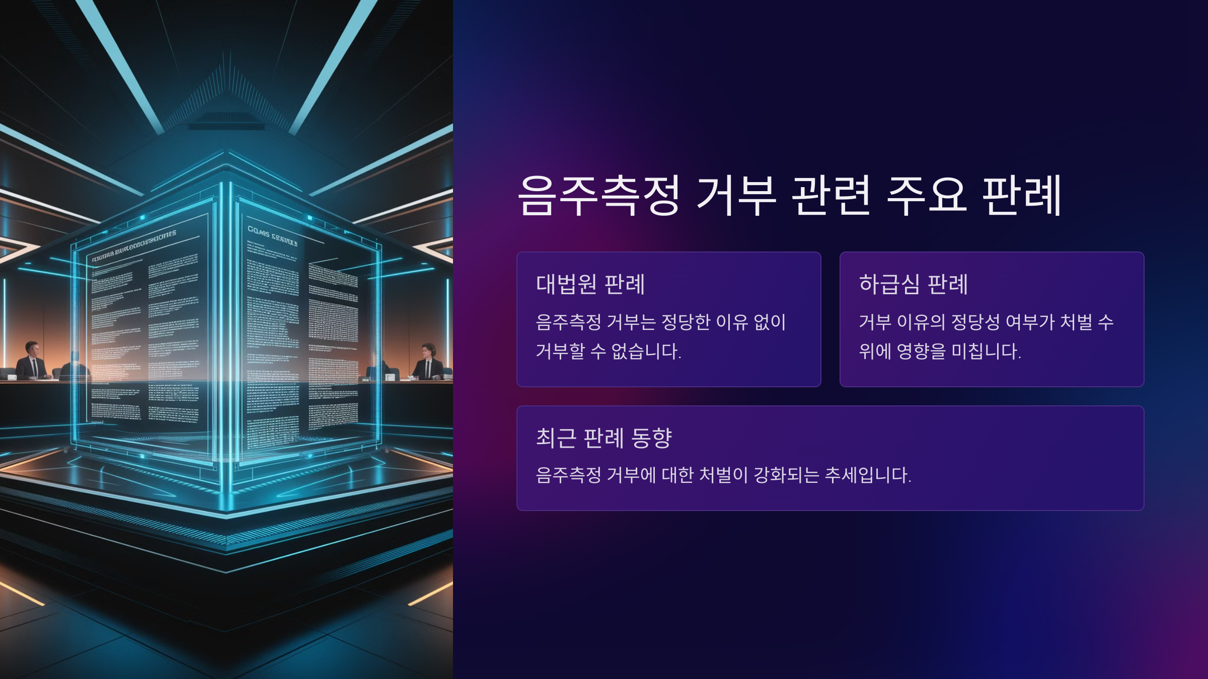 음주측정을 거부하면 법적으로 불리한 상황에 놓이게 돼요. 🚨 따라서 법적 처벌뿐만 아니라 추가적인 불이익이 발생할 수 있는 점을 반드시 유의해야 해요!