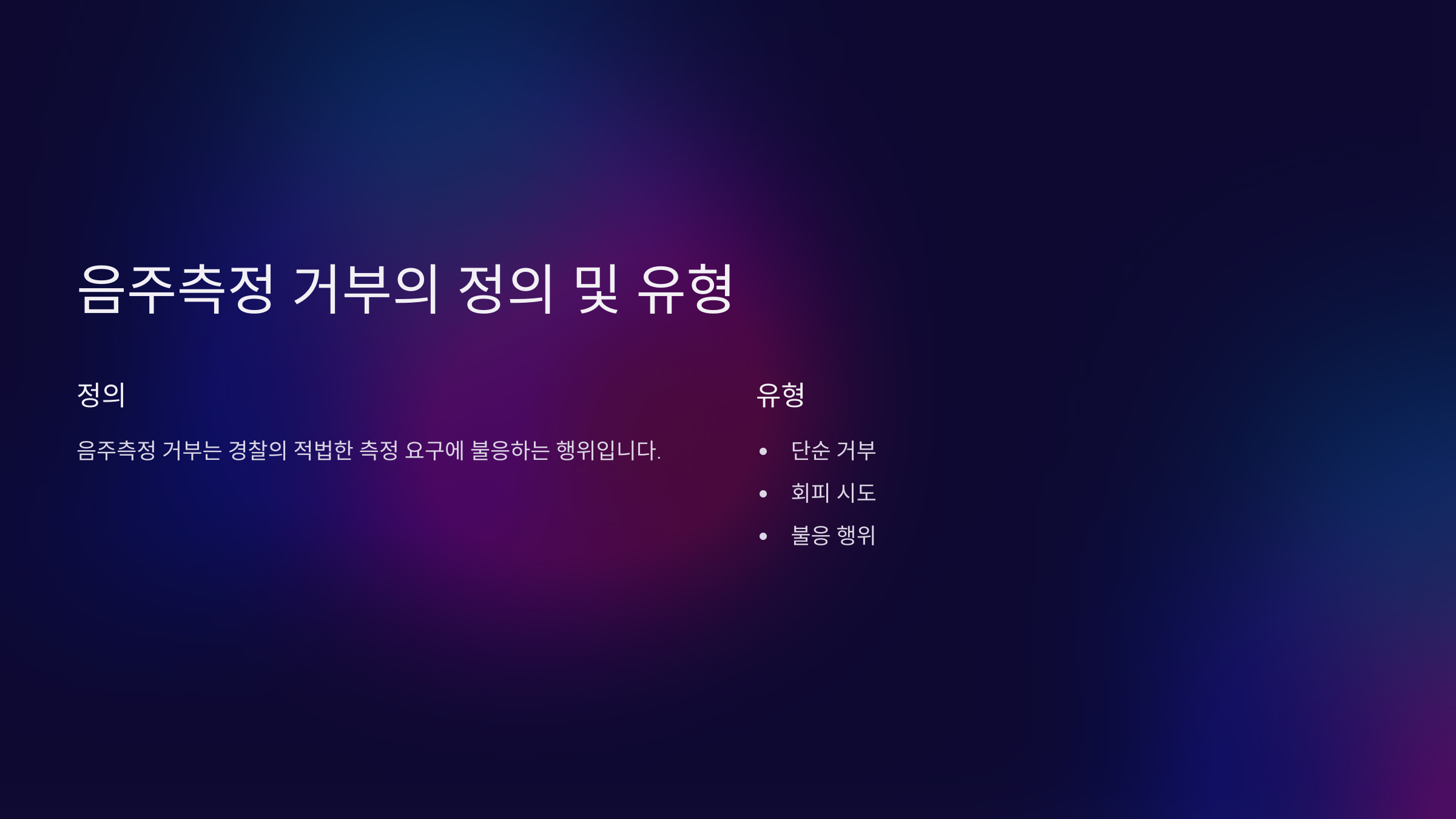 음주측정 거부란 경찰이 도로교통법에 따라 음주단속을 시행할 때, 운전자가 정당한 사유 없이 측정을 거부하는 행위를 의미해요. 🚗