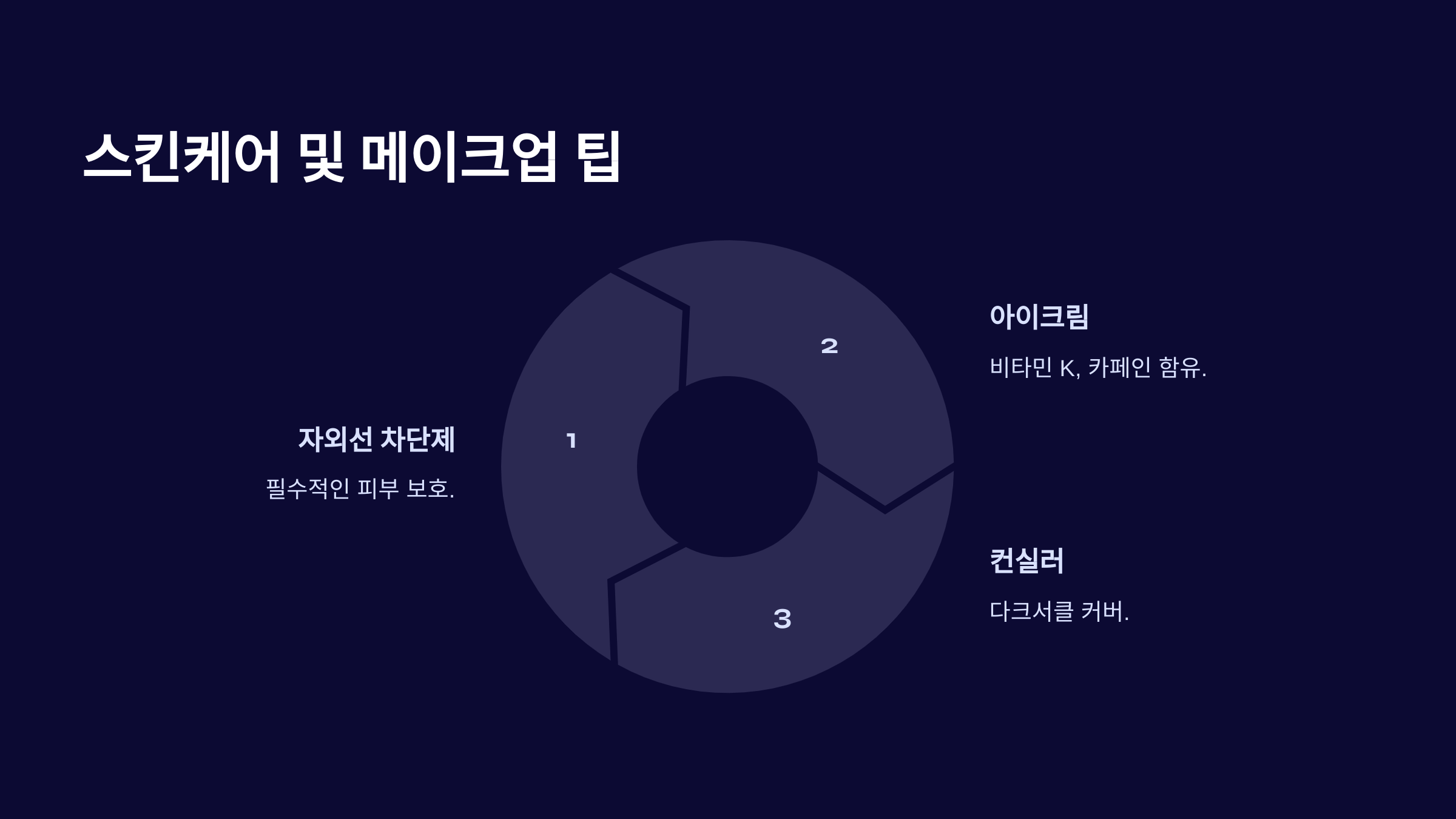 1️⃣ 충분한 수면을 취하세요. 하루 7~8시간 숙면을 유지하면 눈가 혈액 순환이 원활해져 다크서클이 옅어질 수 있어요.