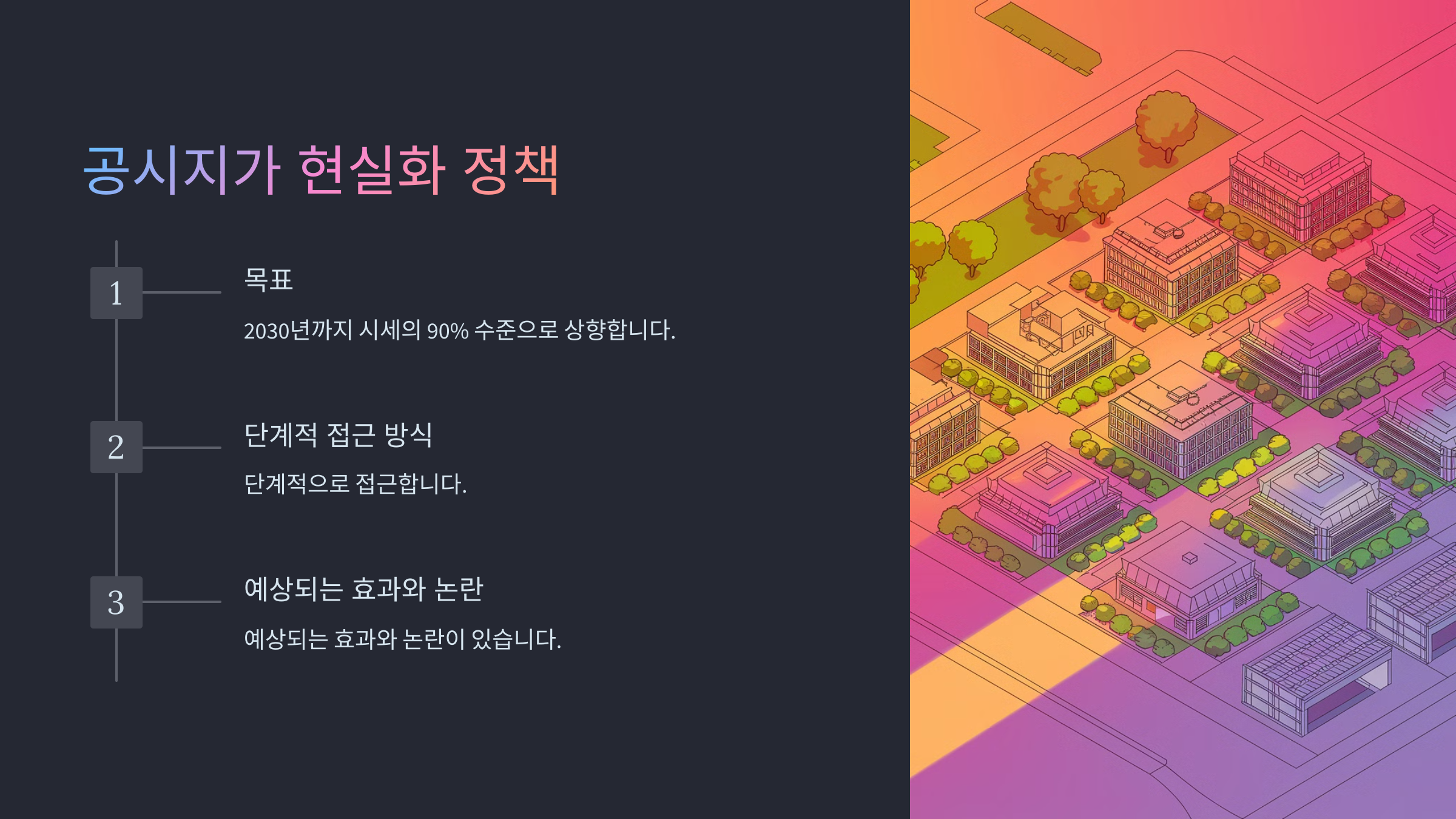 정부는 공시지가를 실거래가와 점진적으로 일치시키려는 방향으로 정책을 추진하고 있어요. 그동안 공시지가가 실거래가보다 지나치게 낮아 부동산 가격을 정확히 반영하지 못한다는 지적이 많았죠.