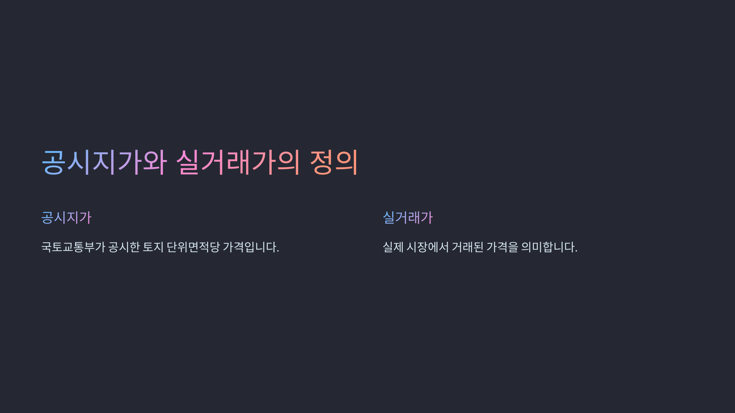 | 구분 | 공시지가 | 실거래가 |