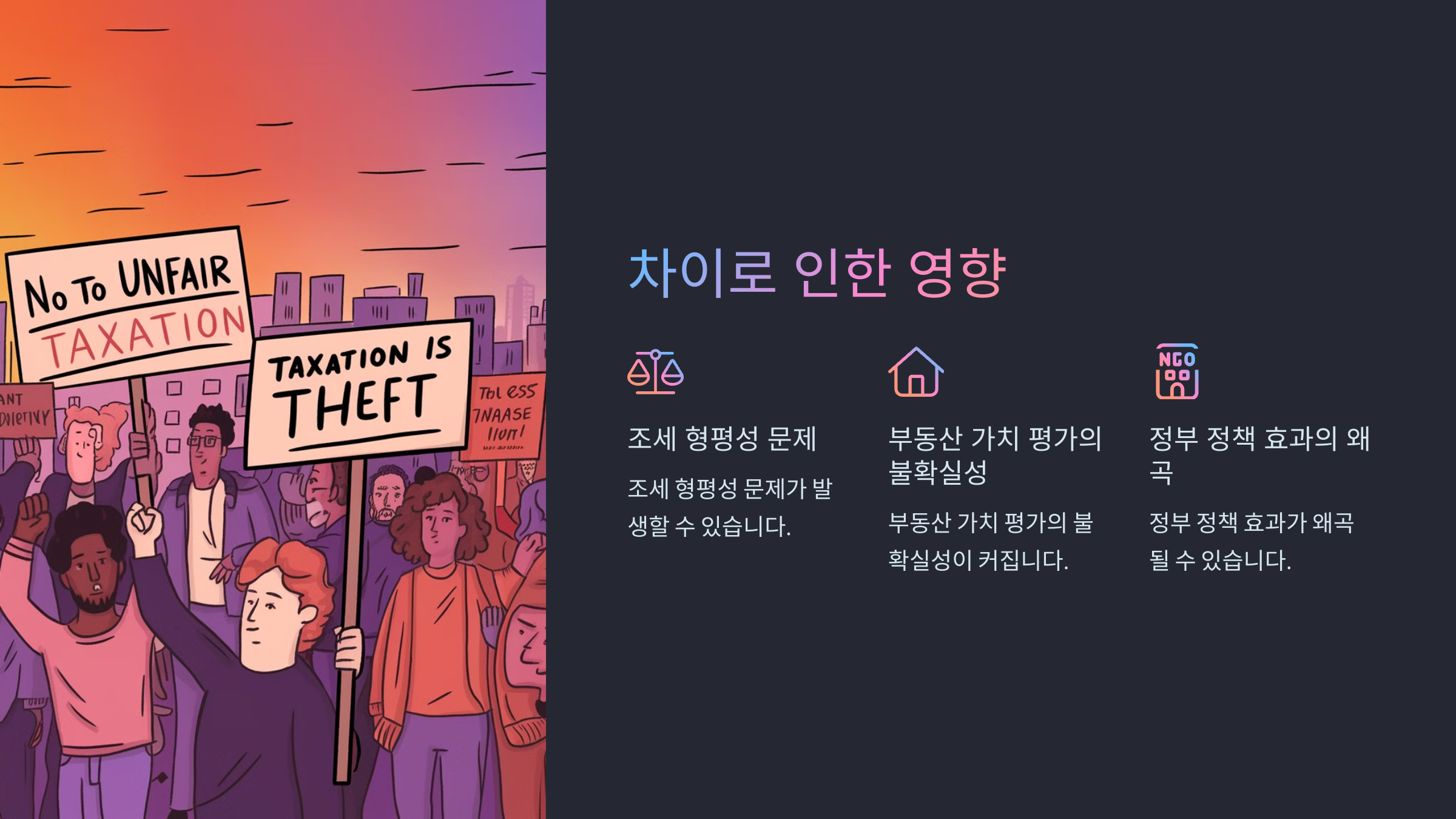 | 세금 | 재산세, 종부세 증가 | 영향 없음 |