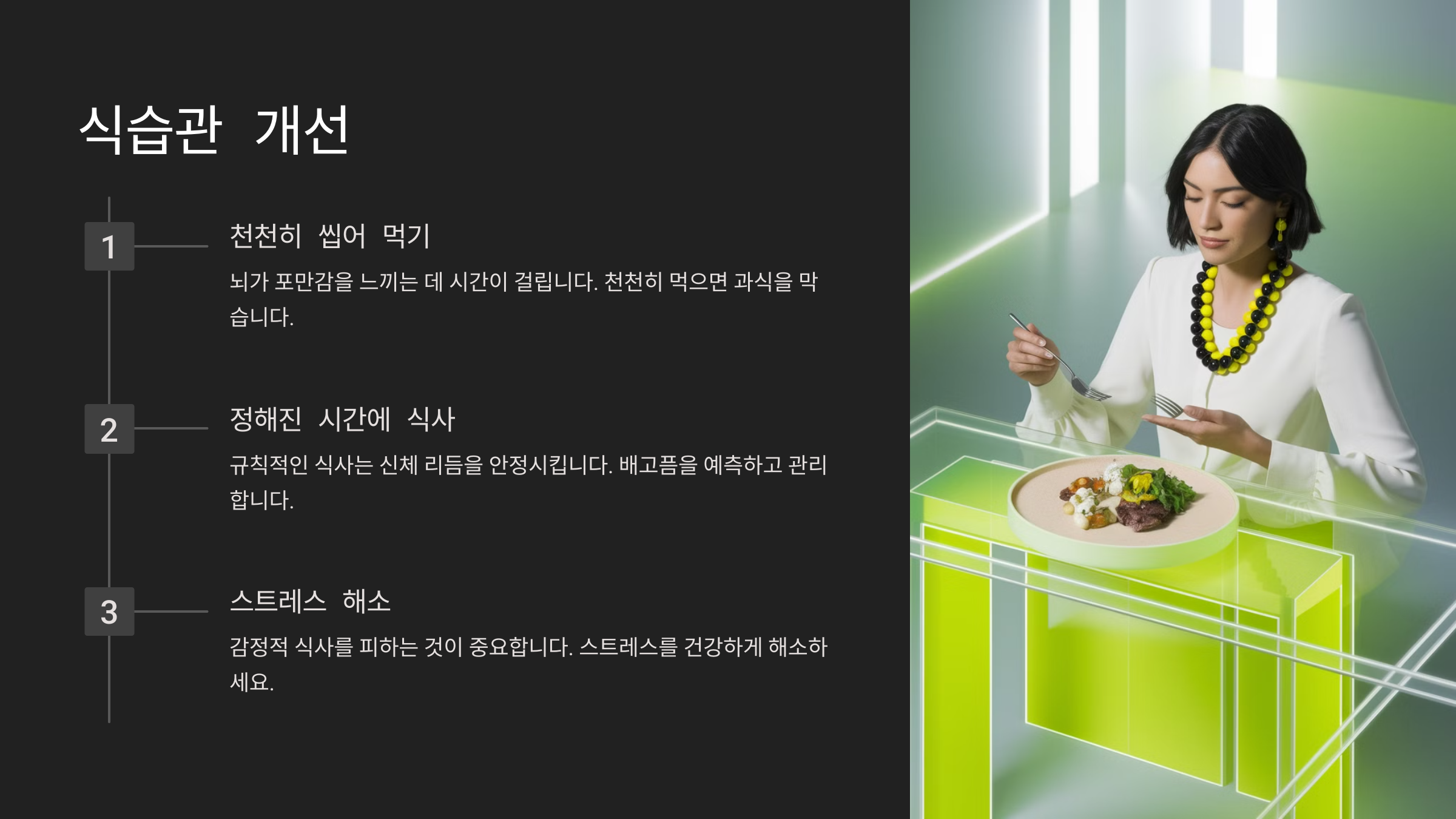 - 식사 중 TV나 핸드폰 사용 줄이기