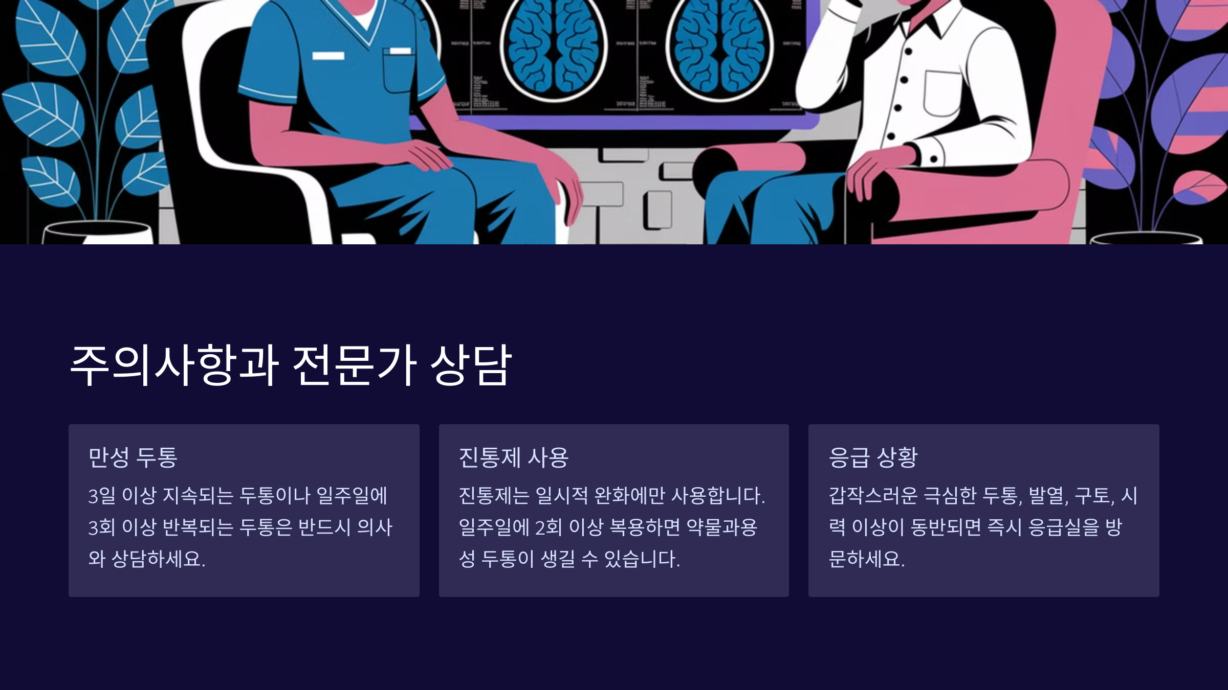 🔽 다음 섹션에서 두통을 즉시 완화하는 효과적인 방법을 알려드릴게요! 나의 말: 네 ChatGPT의 말: html 복사 편집