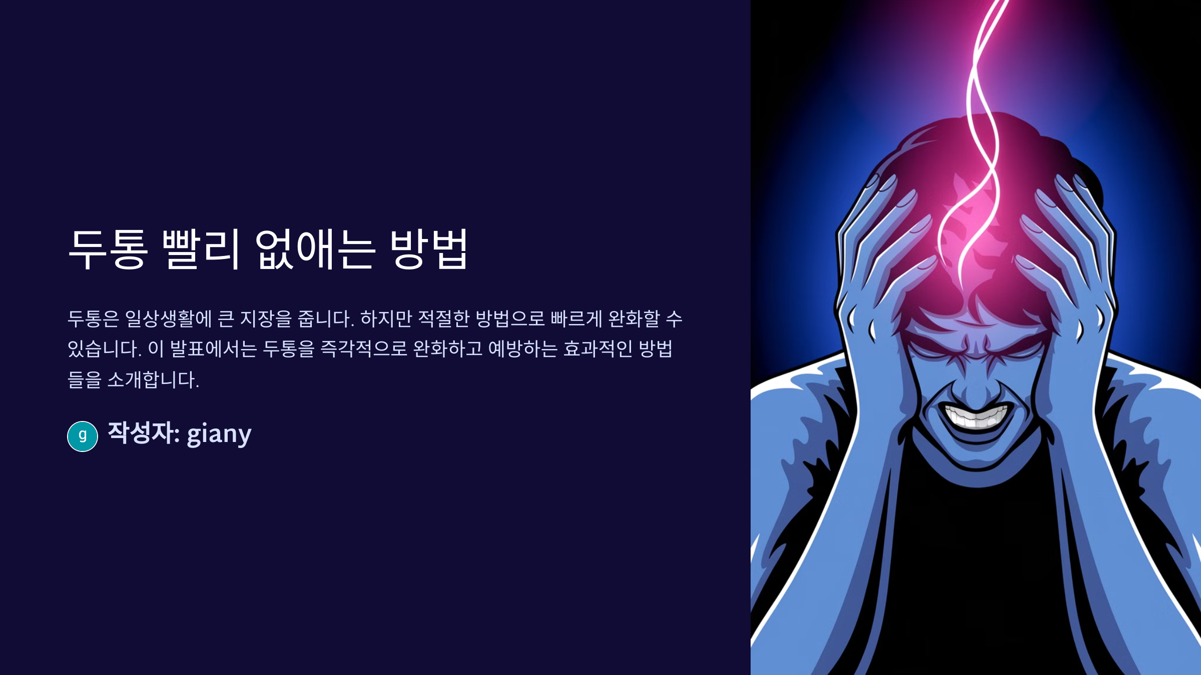 두통은 많은 사람들이 경험하는 흔한 증상이에요. 스트레스, 피로, 수면 부족, 수분 부족 등 다양한 원인으로 발생할 수 있죠. 하지만 두통이 생겼을 때 빠르게 완화하는 방법을 알면 훨씬 편리해요.