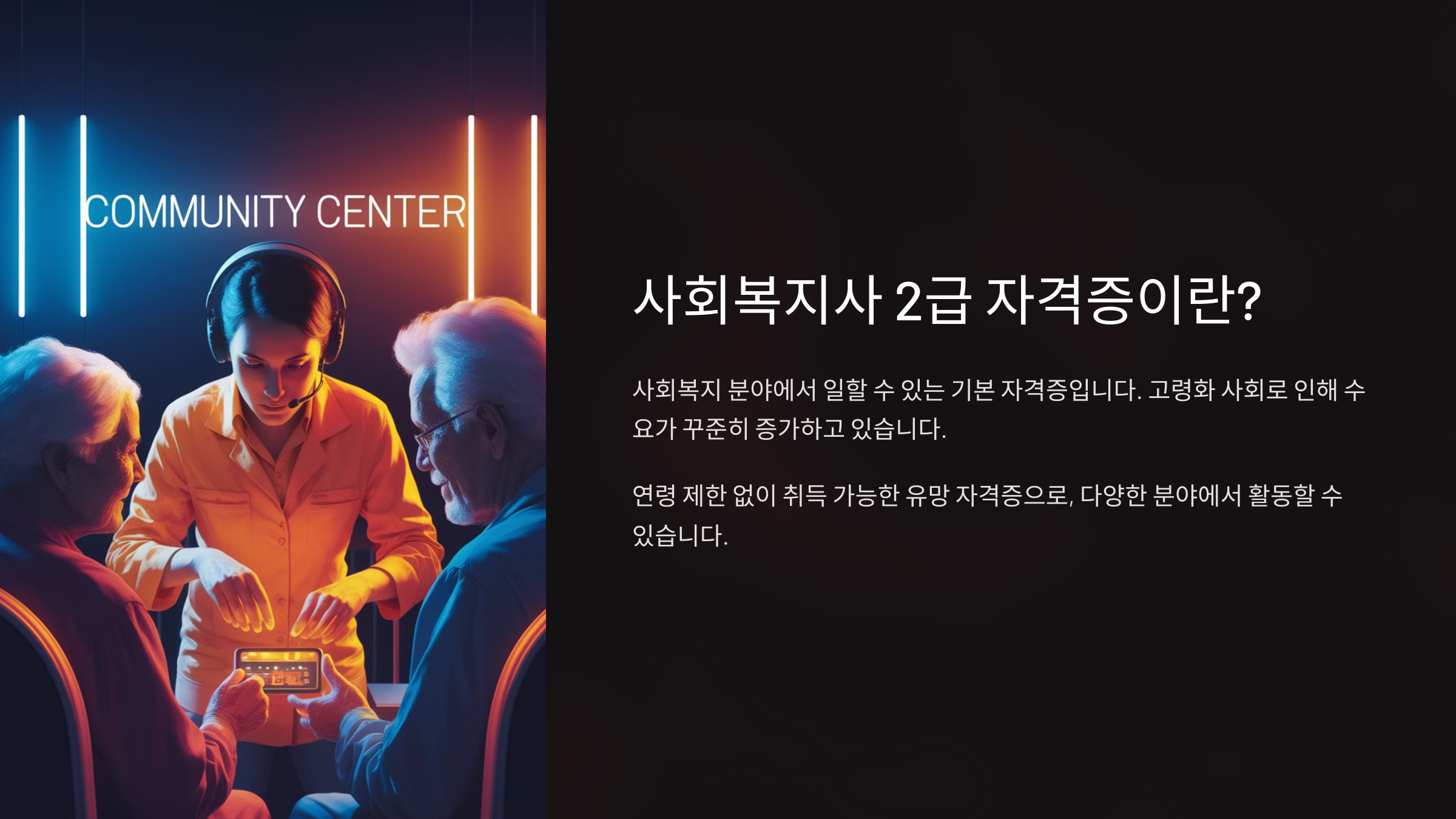 사회복지사 2급은 국가에서 인정하는 사회복지 전문 자격증이에요. 노인, 장애인, 아동, 청소년 등 다양한 복지 대상자를 지원하는 업무를 수행할 수 있죠.