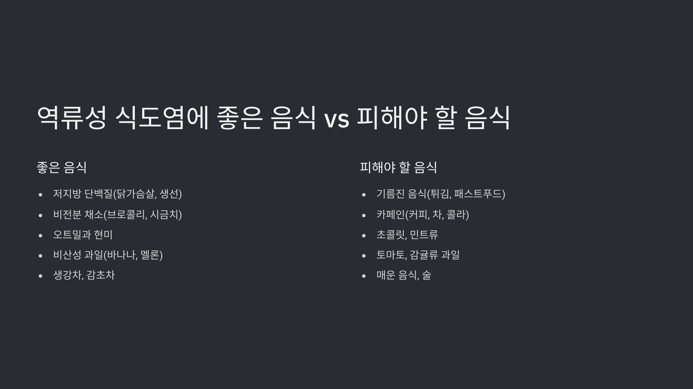 🔹 역류성 식도염에 좋은 음식 vs 피해야 할 음식