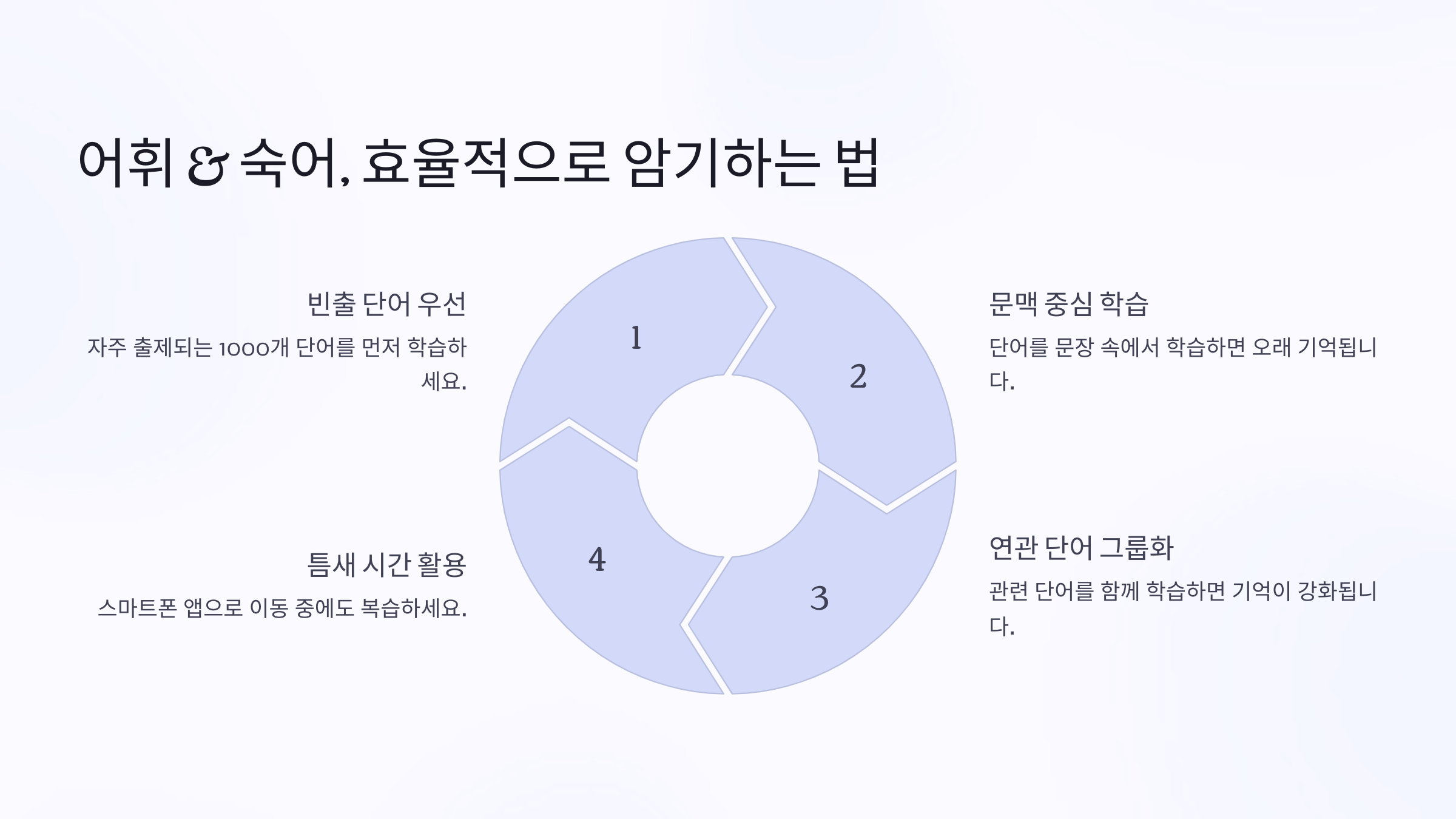 실전 연습은 단순히 많이 푸는 것이 아니라 오답을 분석하고 패턴을 익히는 과정이 중요해요. 다음 섹션에서는 어휘 & 숙어를 효율적으로 암기하는 법을 소개할게요! 📝