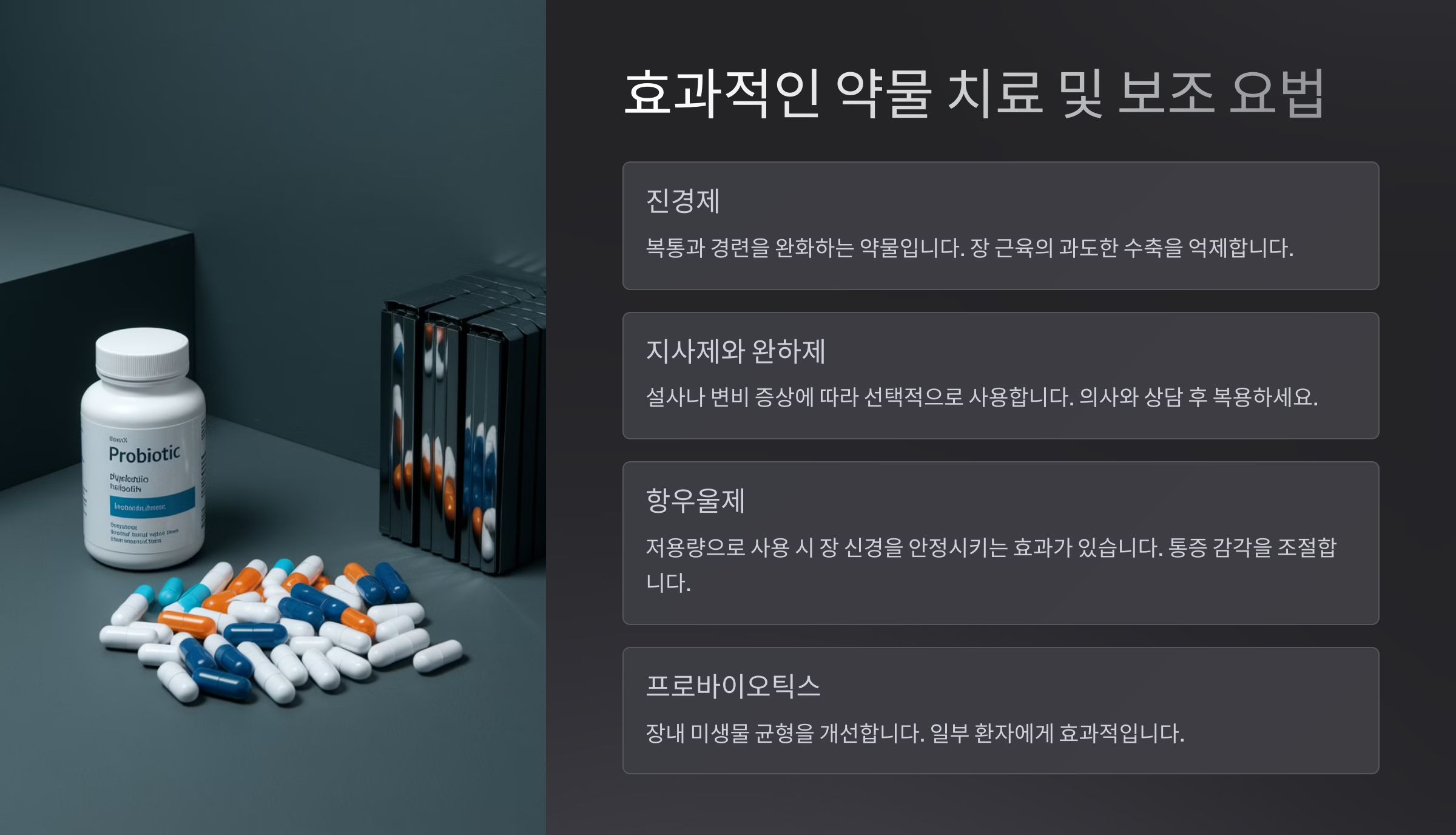 과민성 대장 증후군(IBS)은 생활습관 개선이 중요하지만, 증상이 심할 경우 약물 치료가 필요할 수도 있어요. 적절한 약물을 사용하면 복통, 설사, 변비 등의 증상을 효과적으로 완화할 수 있어요. 💊