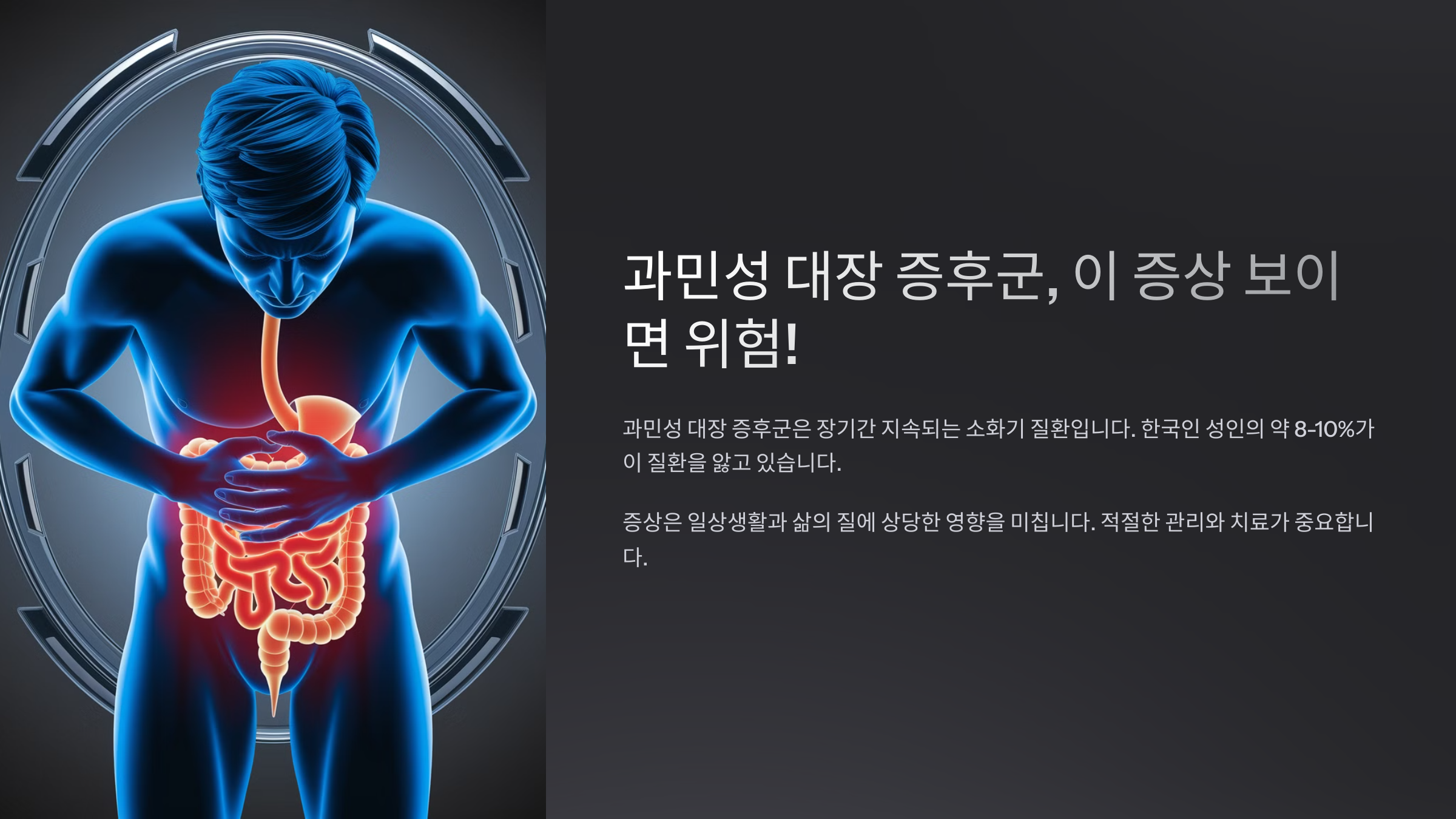 과민성 대장 증후군은 생명에 위협을 주는 질환은 아니지만, 생활의 질을 크게 떨어뜨릴 수 있어요. 증상이 지속되면 정확한 진단을 받고 관리하는 것이 중요해요! 🤓
