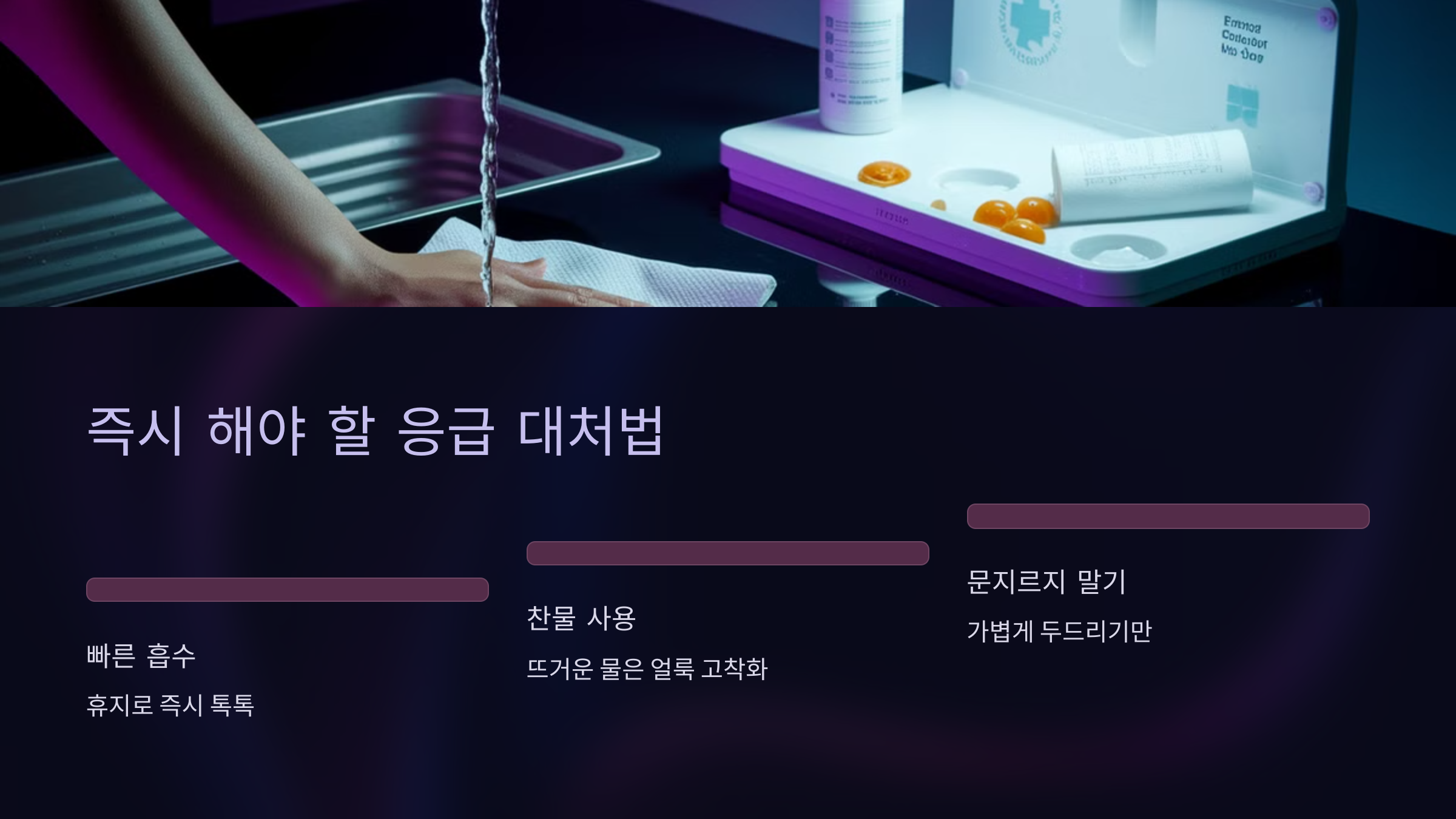 | 2단계 | 찬물에 담그거나 흐르는 물에 헹구기 | 뜨거운 물은 절대 사용 금지 |