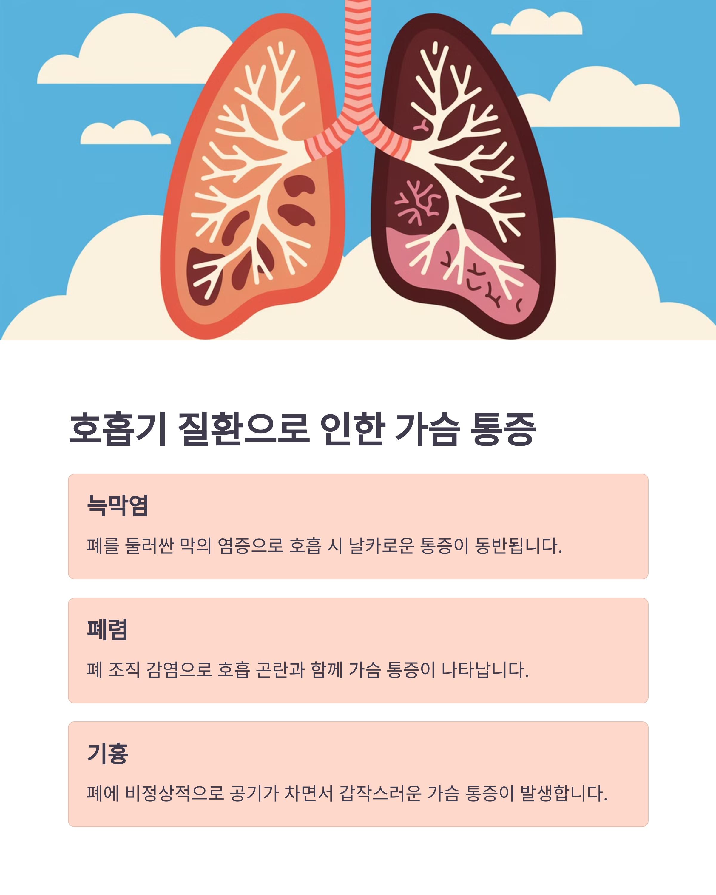 - 흉막염: 흉막에 염증이 발생하여 호흡 시 마찰이 생김