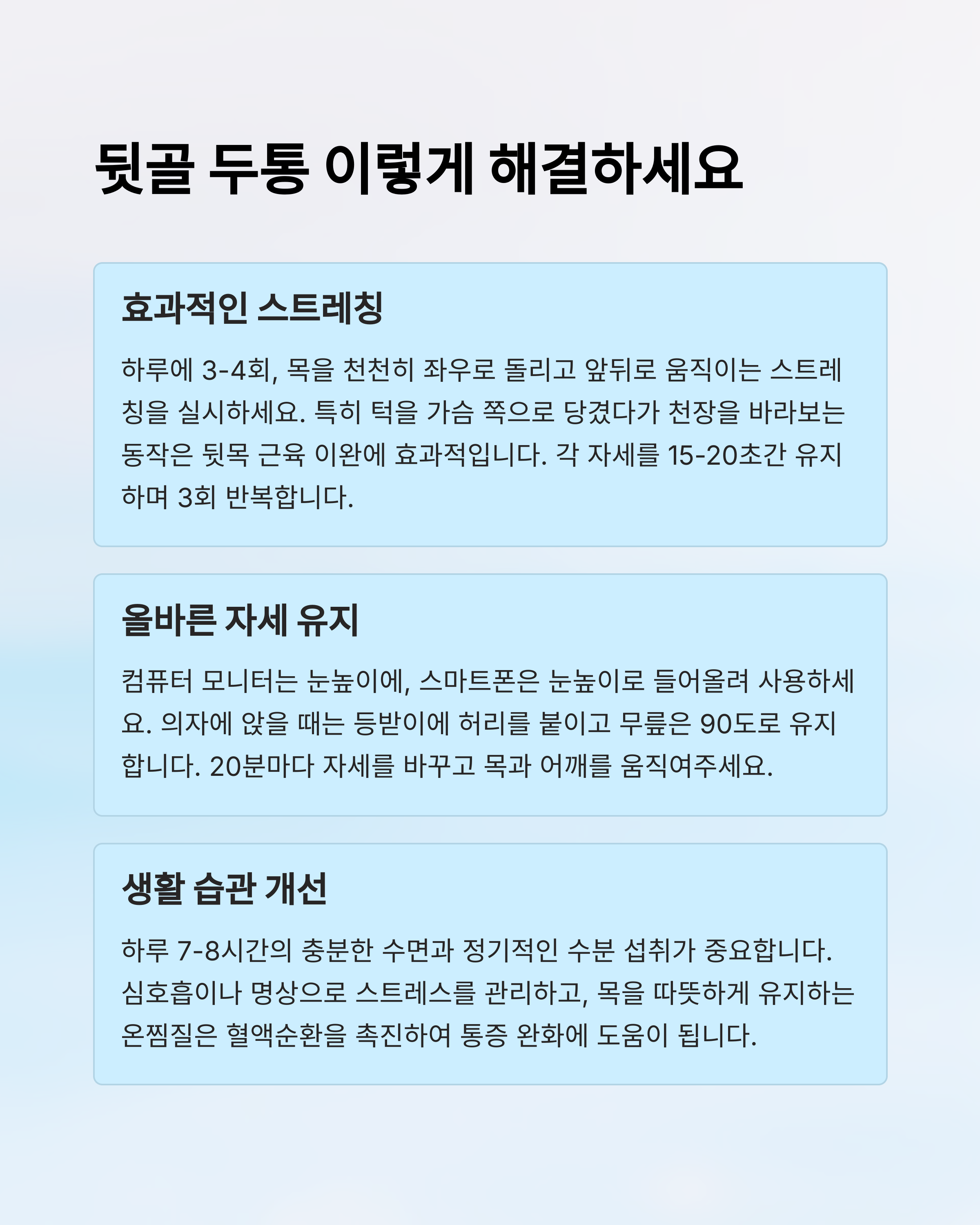 지금부터 뒷골 두통을 줄이는 효과적인 방법을 알아볼게요! 😊