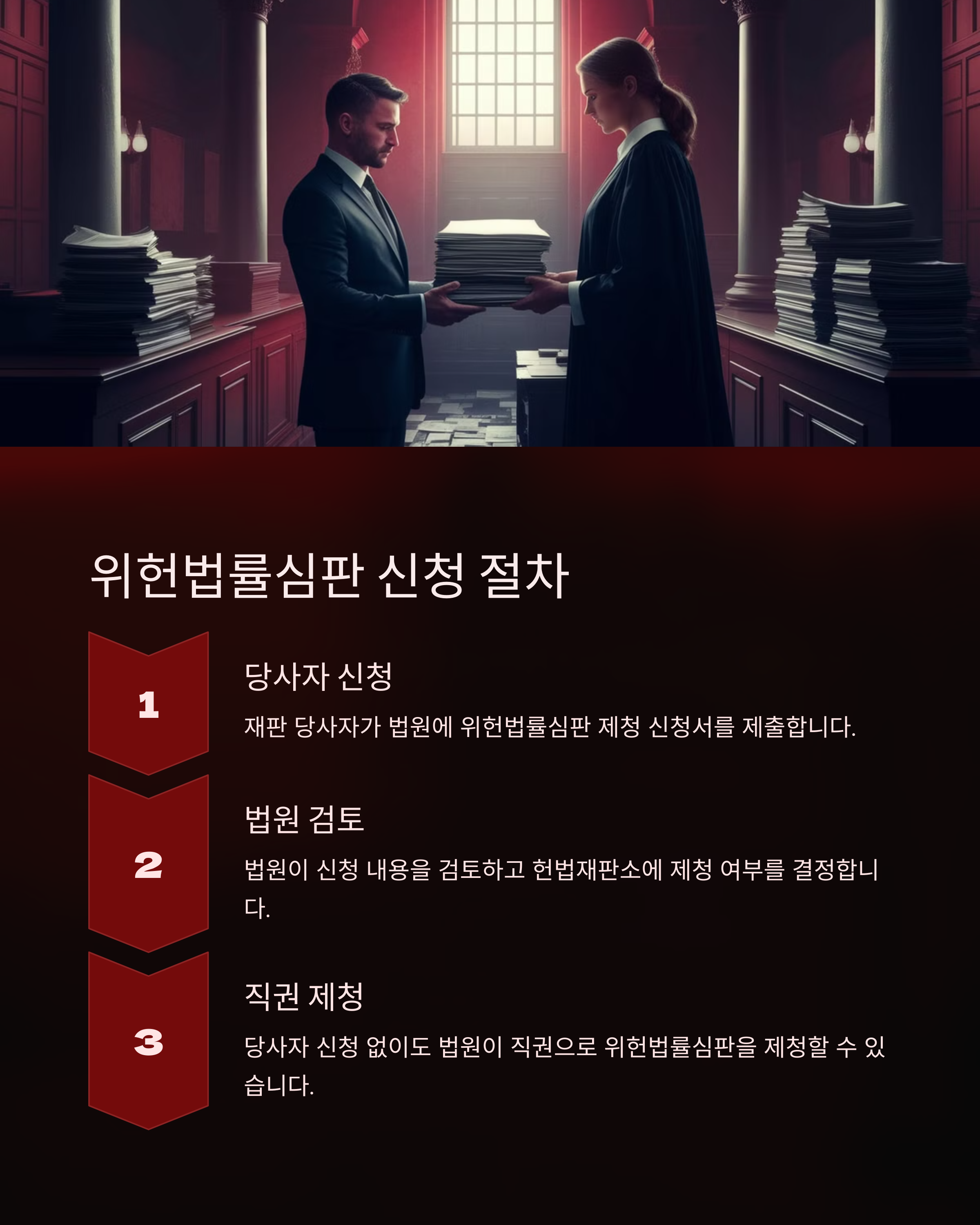 | 2. 법원의 심사 | 법원이 신청 내용을 검토하고 헌법 위반 여부를 판단 |