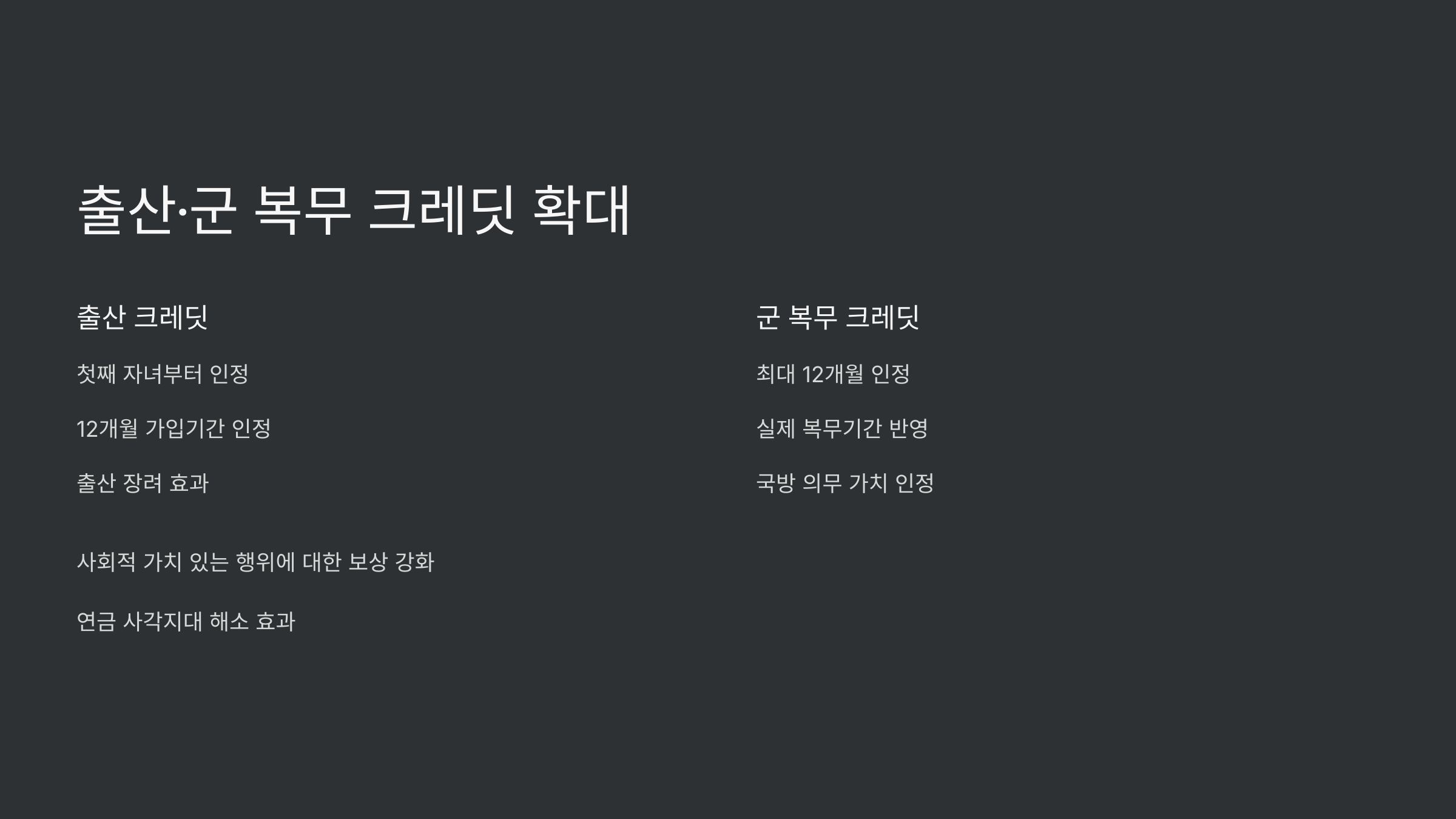 👶🎖️ 출산·군 복무 크레딧 확대