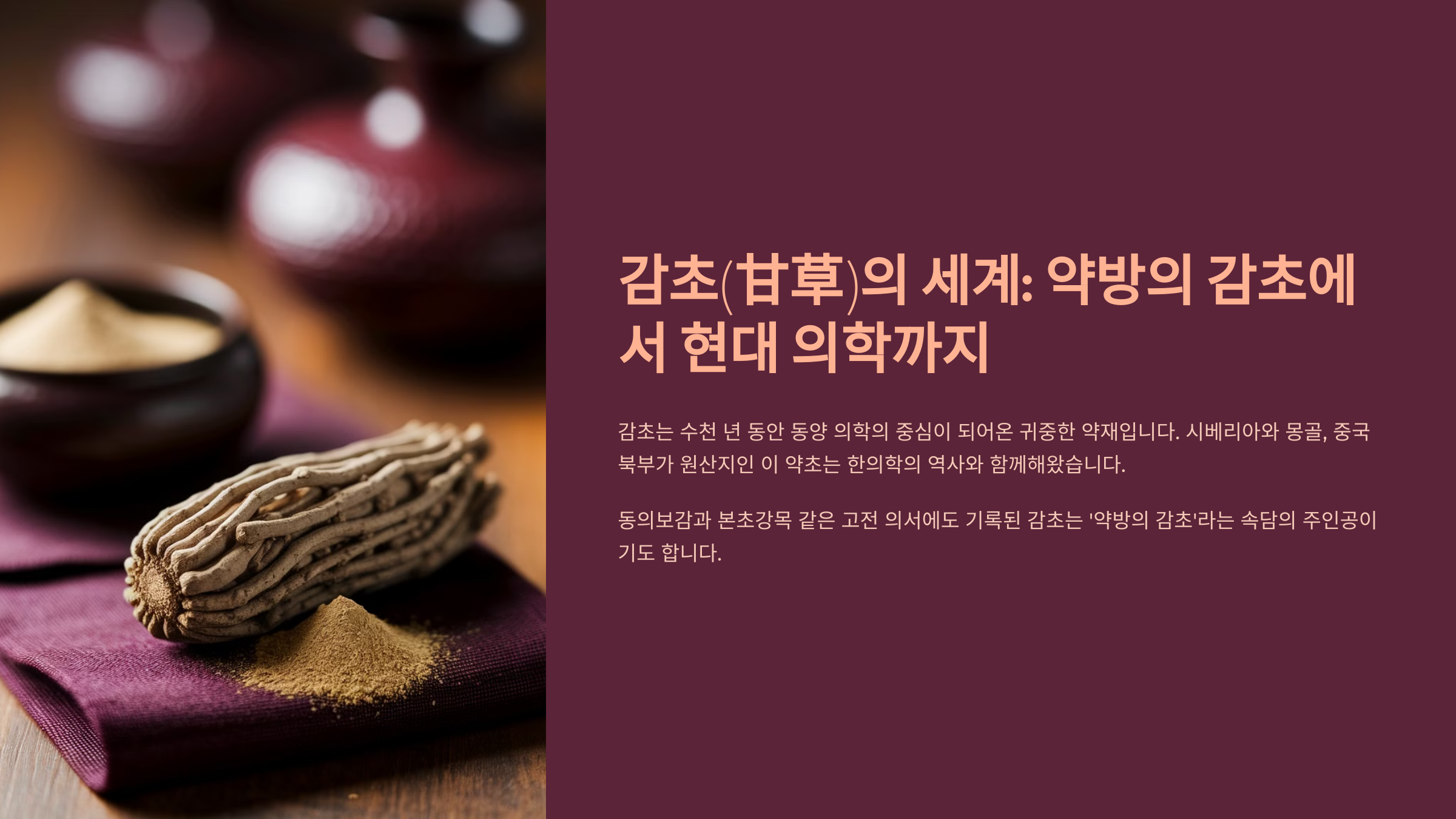 자, 그럼 감초의 세계로 제대로 들어가 볼까요? 지금부터 2025년 기준으로 최신 연구를 반영한 감초의 모든 것을 알아보는 시간을 가져볼게요! 😊