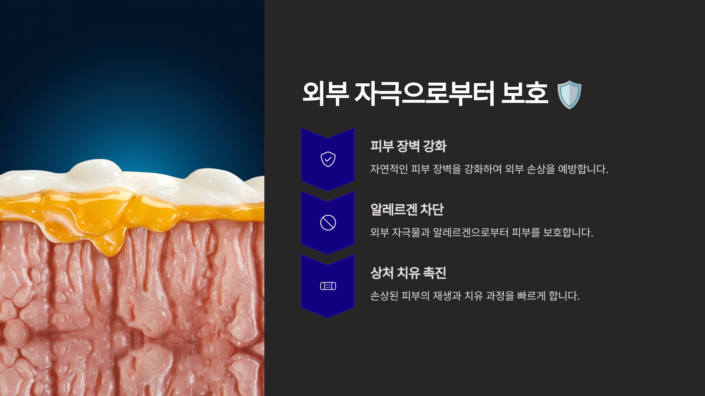 | 찬바람/건조한 날씨 | 수분 증발, 각질 증가 | 수분 유지, 피부 장벽 보호 |