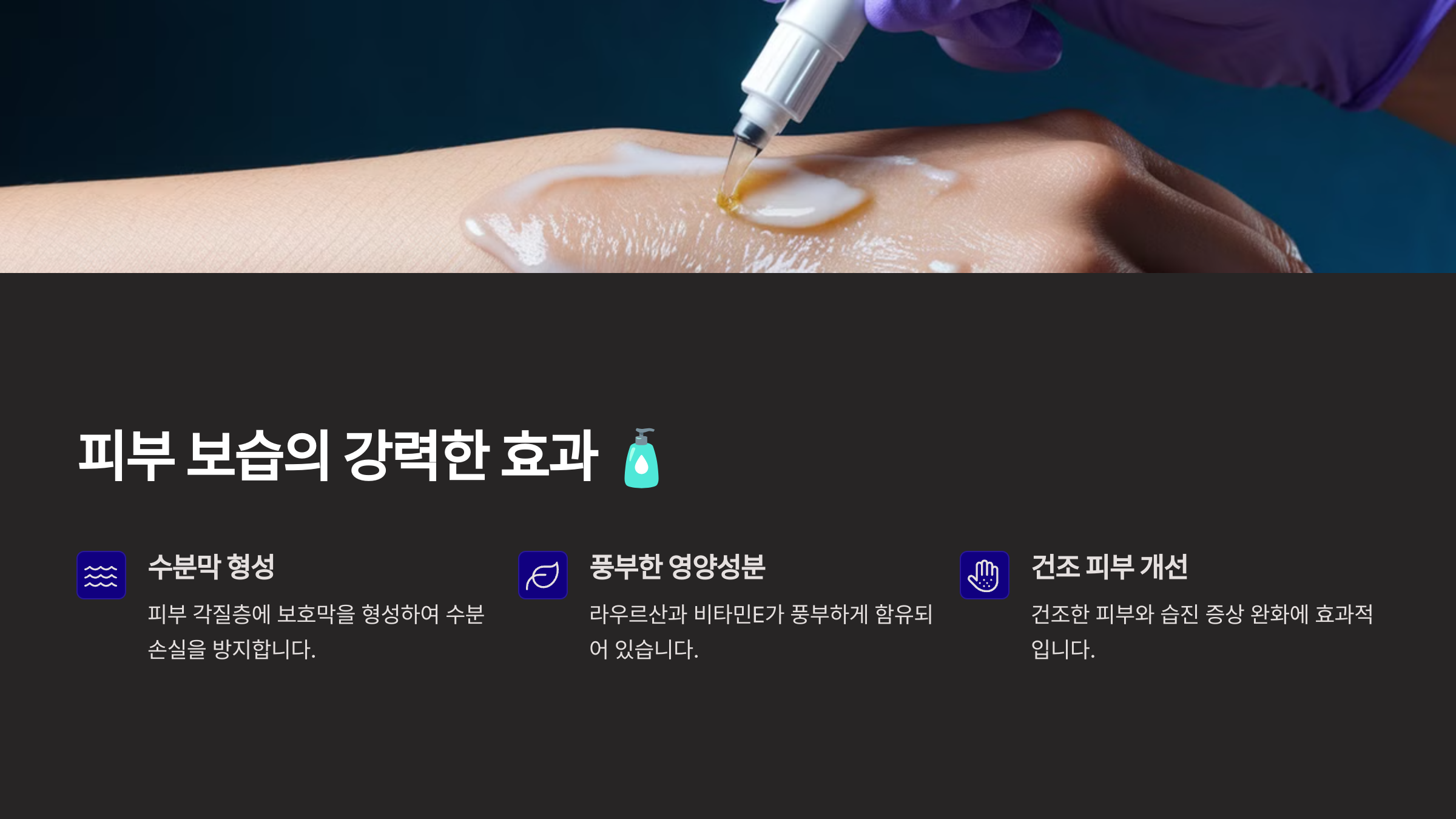 | 찬바람/건조한 날씨 | 수분 증발, 각질 증가 | 수분 유지, 피부 장벽 보호 |