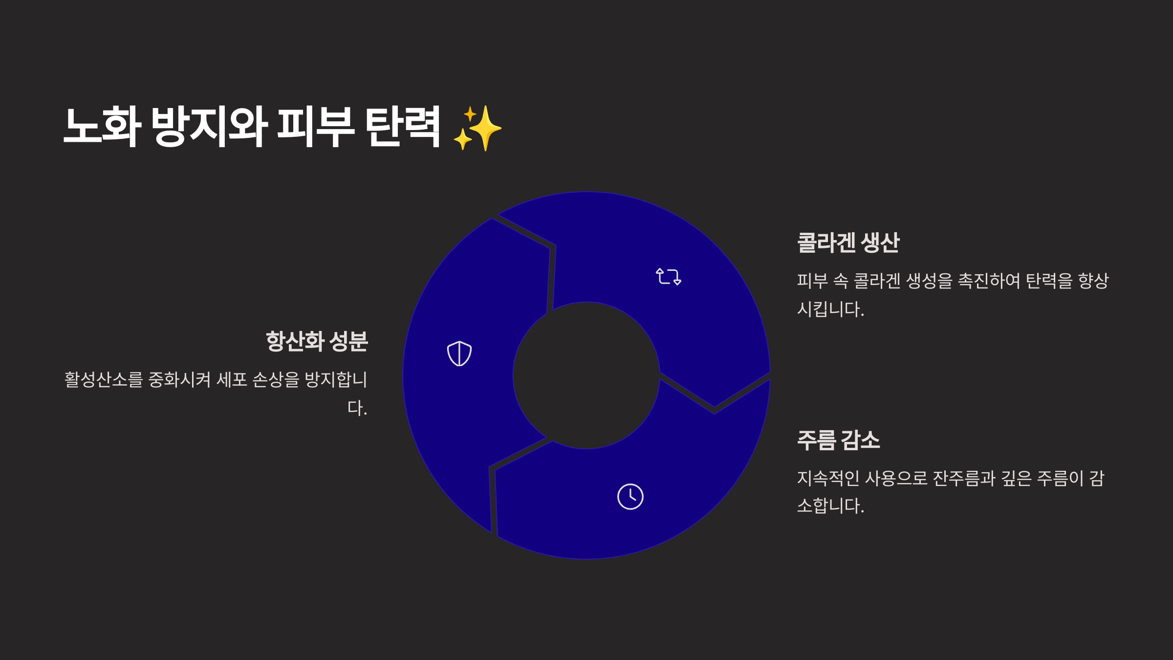 | 폴리페놀 | 피부톤 균일화 | 맑고 생기 있는 피부 |