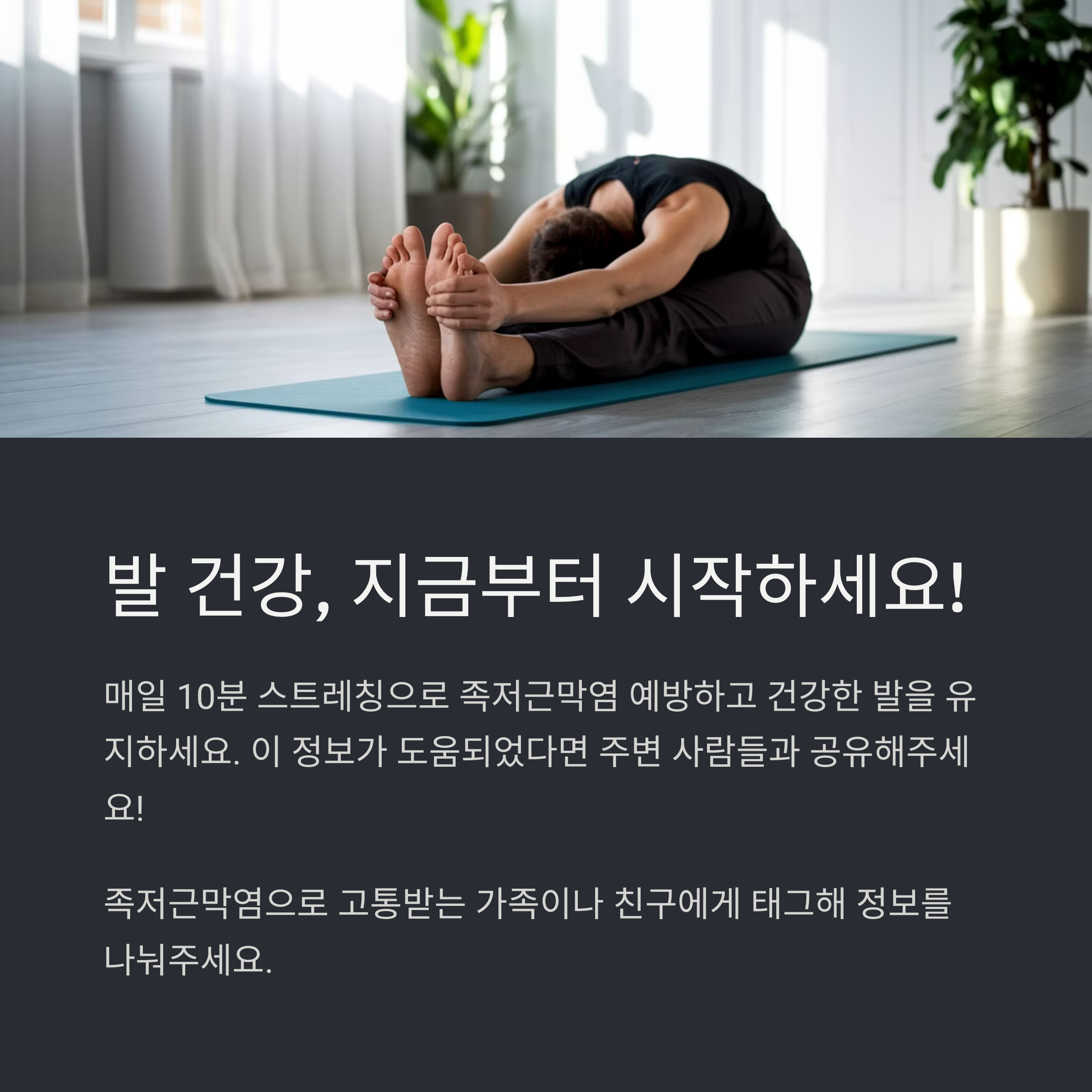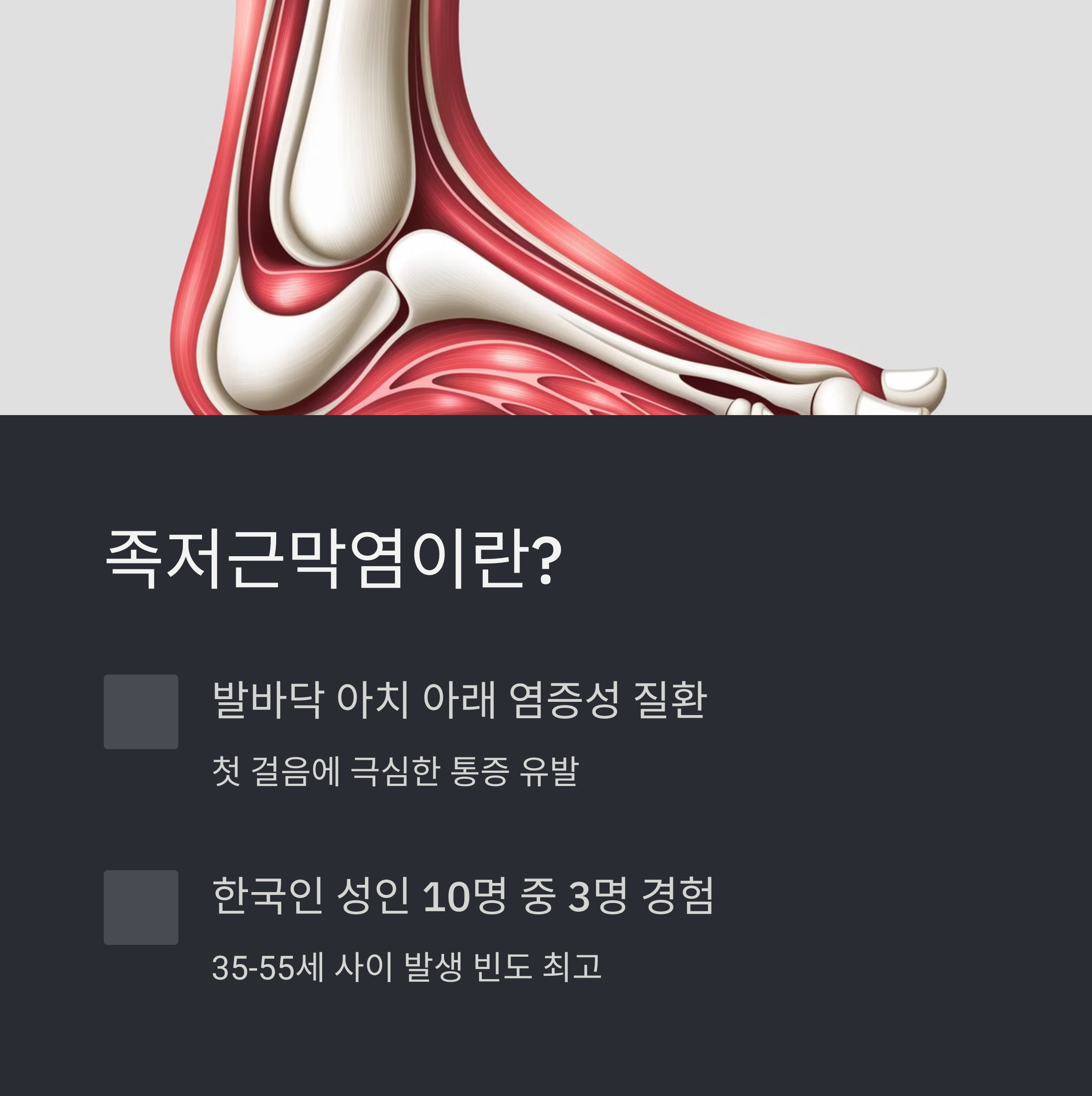 💬 족저근막염은 조기 발견과 꾸준한 관리로 충분히 좋아질 수 있어요.