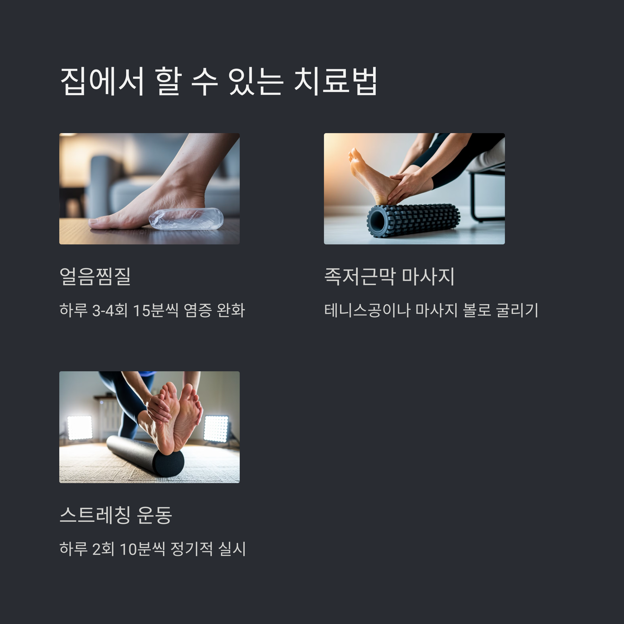 족저근막염은 생활 속 관리로 충분히 호전될 수 있어요. 지금 당장 실천해보세요!