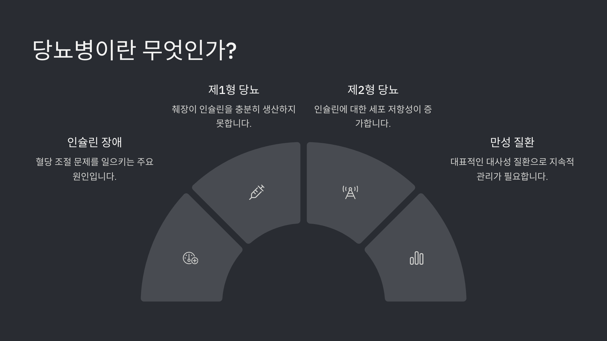 당뇨병은 우리 몸의 혈당을 조절하는 인슐린의 기능이 떨어지거나 분비 자체가 부족해서 혈당이 높게 유지되는 상태를 말해요. 정상적인 사람은 식사를 하면 인슐린이 분비되어 혈당을 낮춰주지만, 당뇨 환자는 이 조절이 잘 되지 않아서 여러 증상이 나타나요.