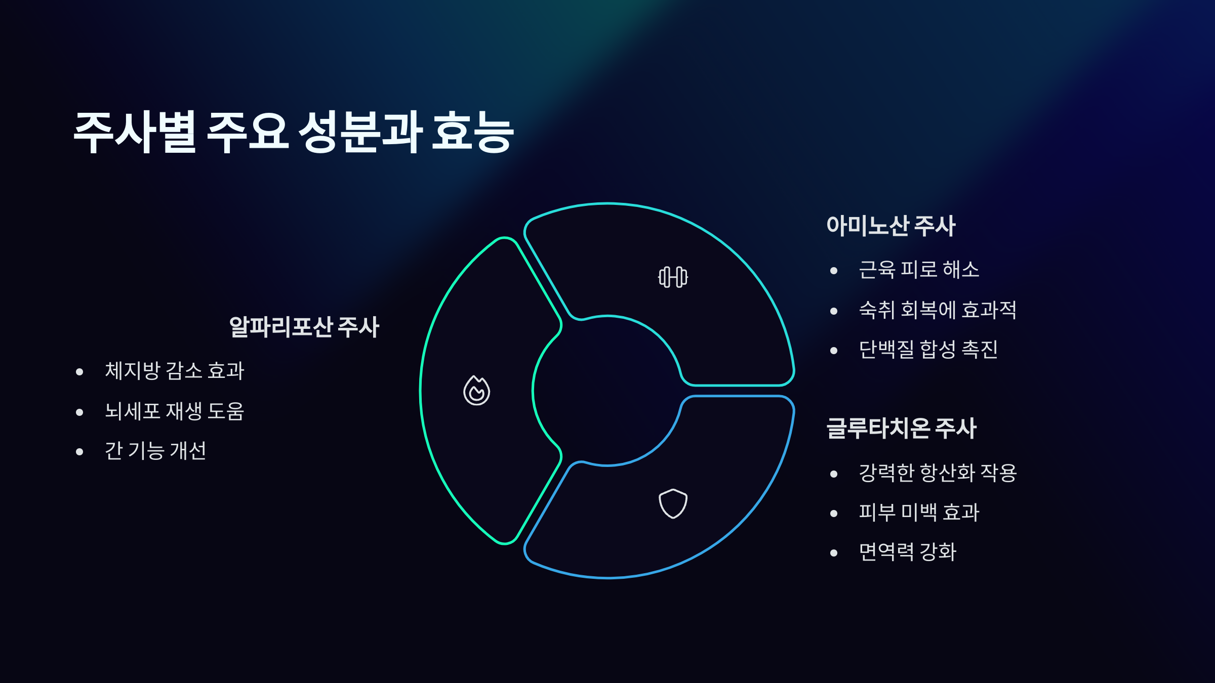 | 주사 이름 | 주요 성분 | 효과 |