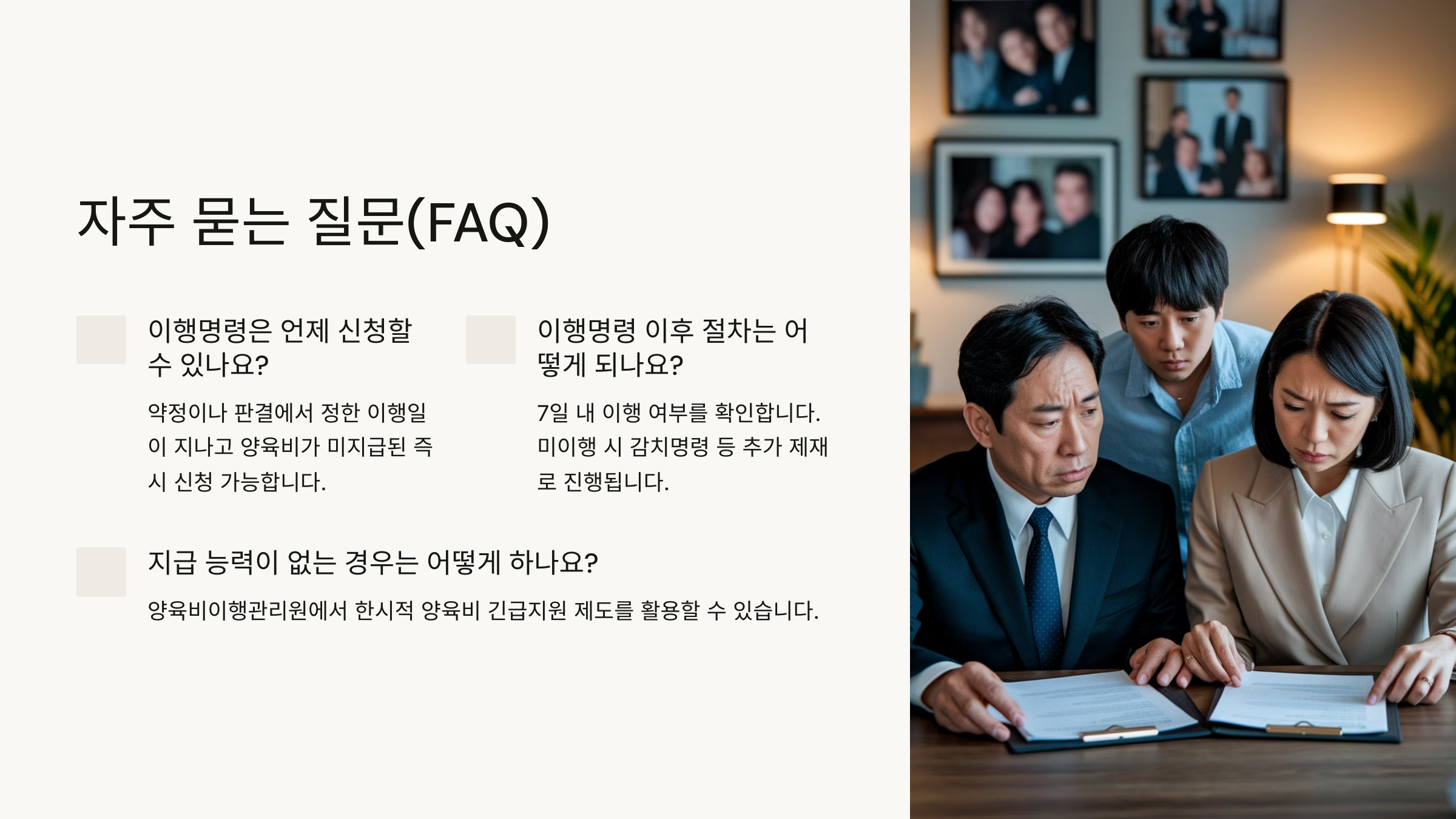 Q1. 양육비 이행명령은 언제 신청할 수 있나요?