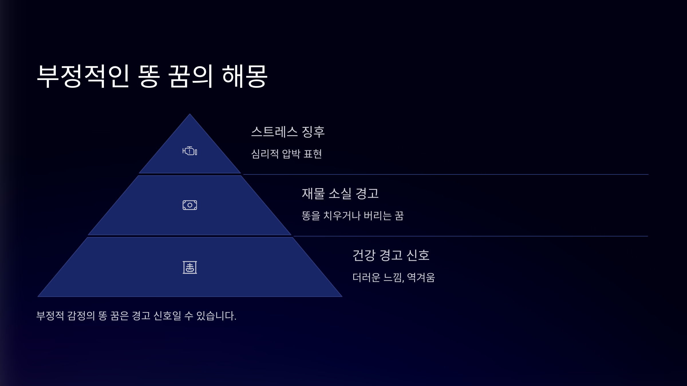 똥 꿈이 대부분 금전운이나 해방을 상징하는 긍정적 메시지를 담고 있는 반면, 때로는 부정적 의미나 경고로 작용하는 경우도 있어요. 꿈의 디테일이 불쾌하거나 반복적으로 나올 경우에는 주의가 필요하답니다.