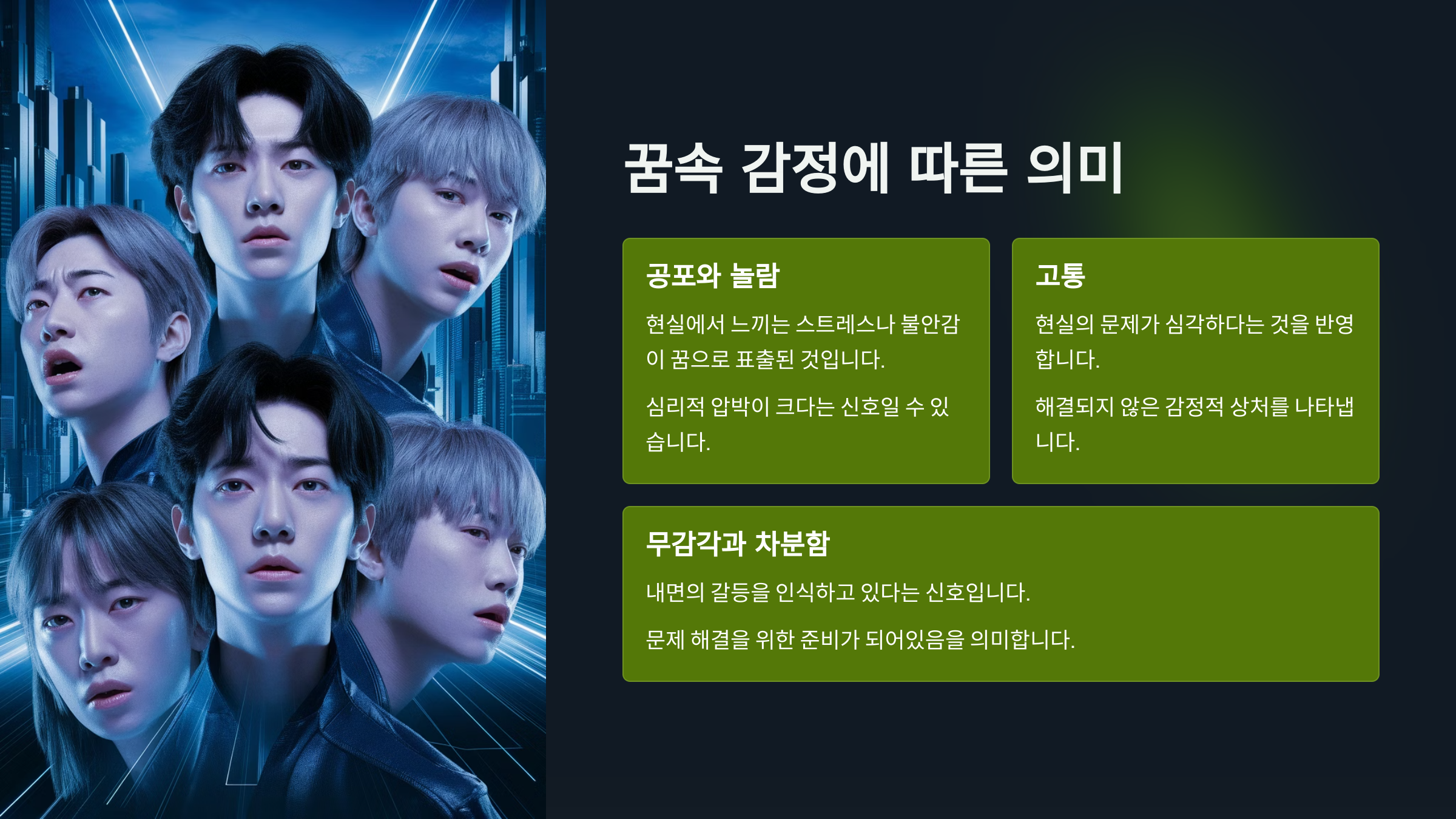즉, ‘누구에게’, ‘어디서’, ‘어떻게’, ‘내 감정은 어땠는가’가 길몽과 흉몽을 가르는 열쇠예요. 무조건 겁내기보다는, 지금 내 마음과 관계를 한번 돌아보라는 뜻으로 받아들이면 더 의미 있는 해몽이 될 수 있어요.