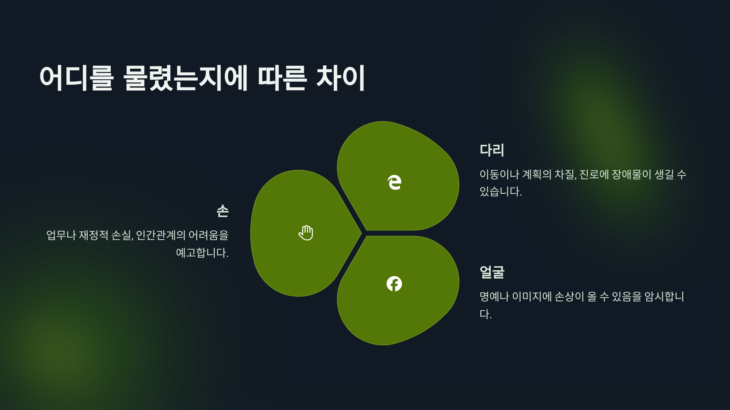 개에게 물리는 부위에 따라 꿈의 의미는 크게 달라질 수 있어요. 신체 부위는 종종 삶의 특정 영역을 상징하기 때문에, 어디를 물렸느냐가 해몽의 디테일을 결정해요. 몸의 각 부분은 감정, 행동, 관계, 일 등을 나타내기 때문이에요.