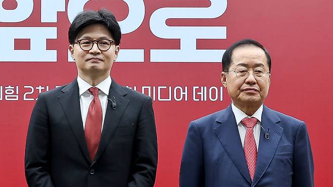 한동훈 예비후보는 앞서 홍준표 예비후보가 전직 대통령 윤석열씨에 대한 사과를 요구한 데 대해 다소 굳은 얼굴로 "경선 과정에서 지금 상황과 미래에 대해 가감 없이 토론하고, 좋은 정치 방향과 희망을 지지자들과 국민에게 드릴 수 있을 것"이라고 말했습니다.