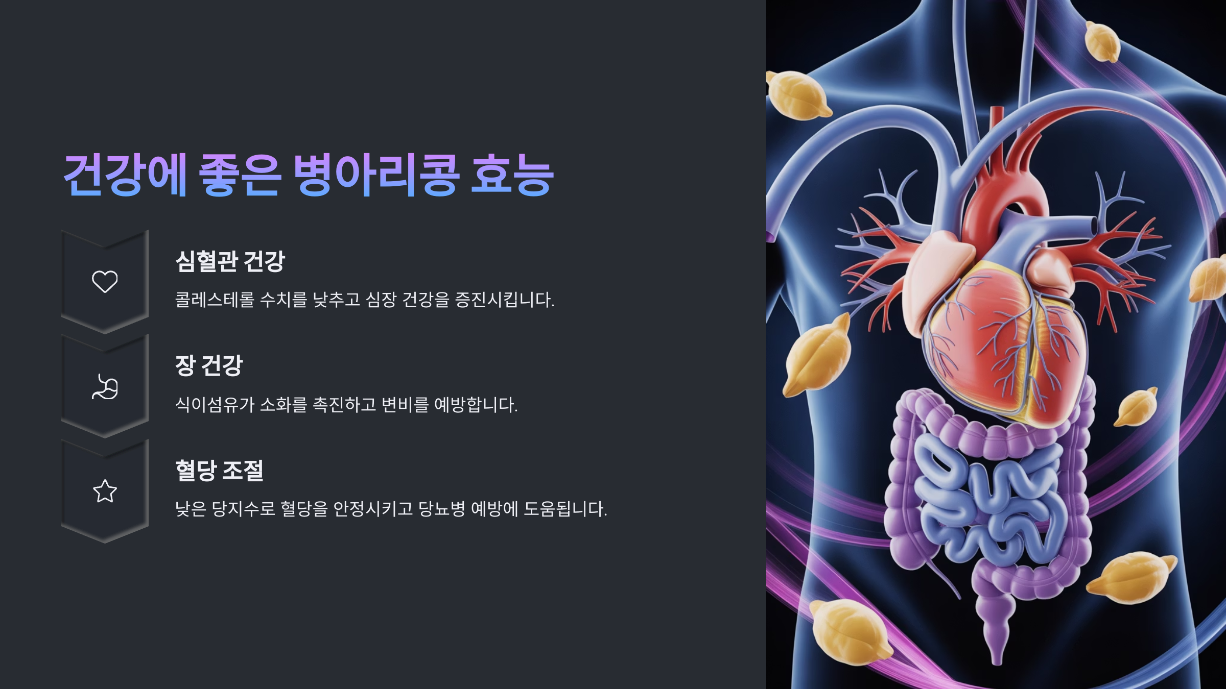 병아리콩은 단순한 영양소 덩어리를 넘어, 건강에 다양한 효과를 주는 식재료예요. 가장 많이 알려진 건 심혈관 건강에 도움이 된다는 점이에요. 병아리콩에는 불포화지방산이 풍부하고 콜레스테롤을 낮추는 식이섬유도 가득해서 혈관을 깨끗하게 유지해줘요. 꾸준히 먹으면 고혈압이나 심장 질환 예방에도 효과가 있답니다.