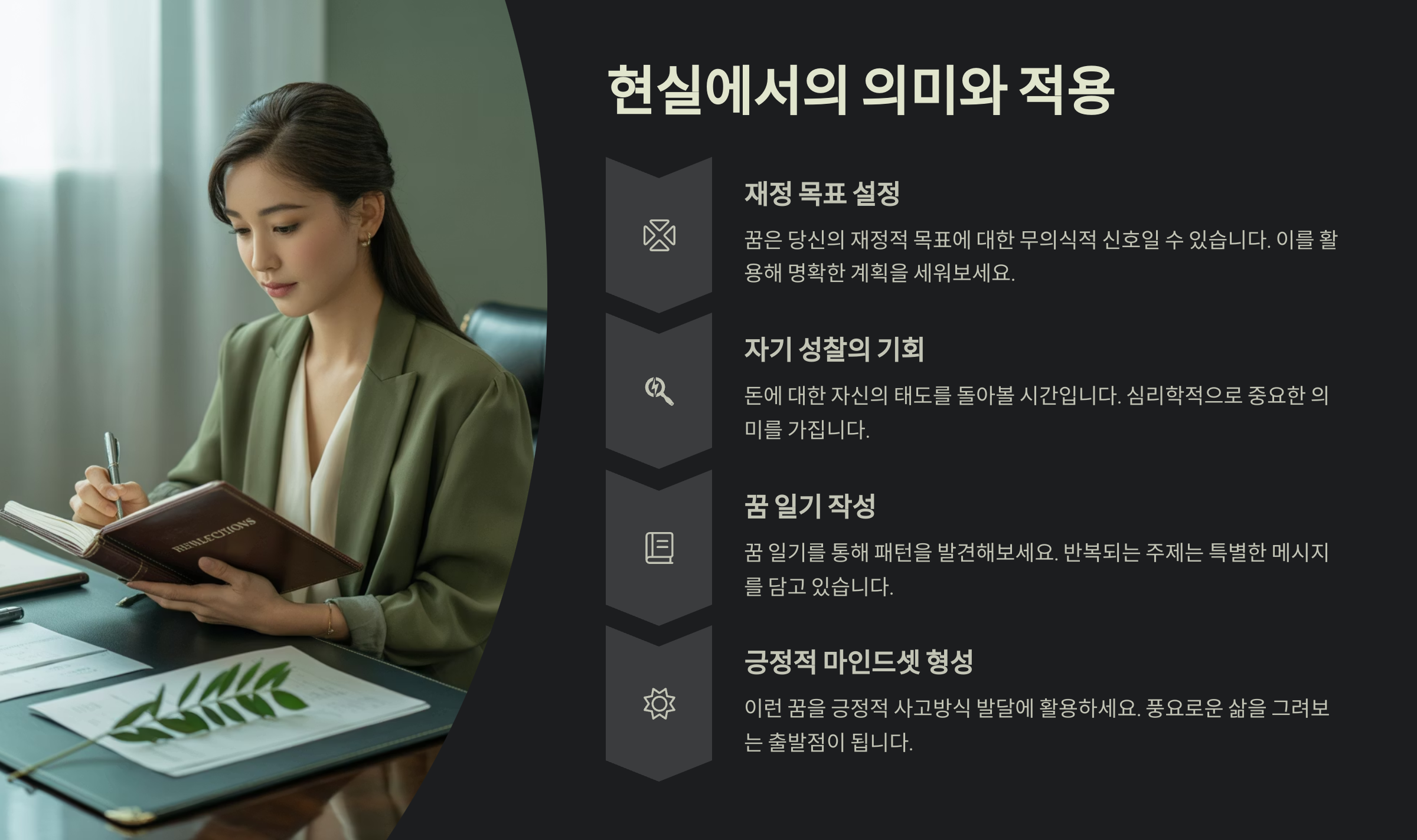 이제 마지막으로, 이런 꿈이 실제 삶에서 어떤 의미를 가질 수 있는지 알아보고, 현실 속에서 어떻게 활용하면 좋을지 정리해볼게요! 🌱