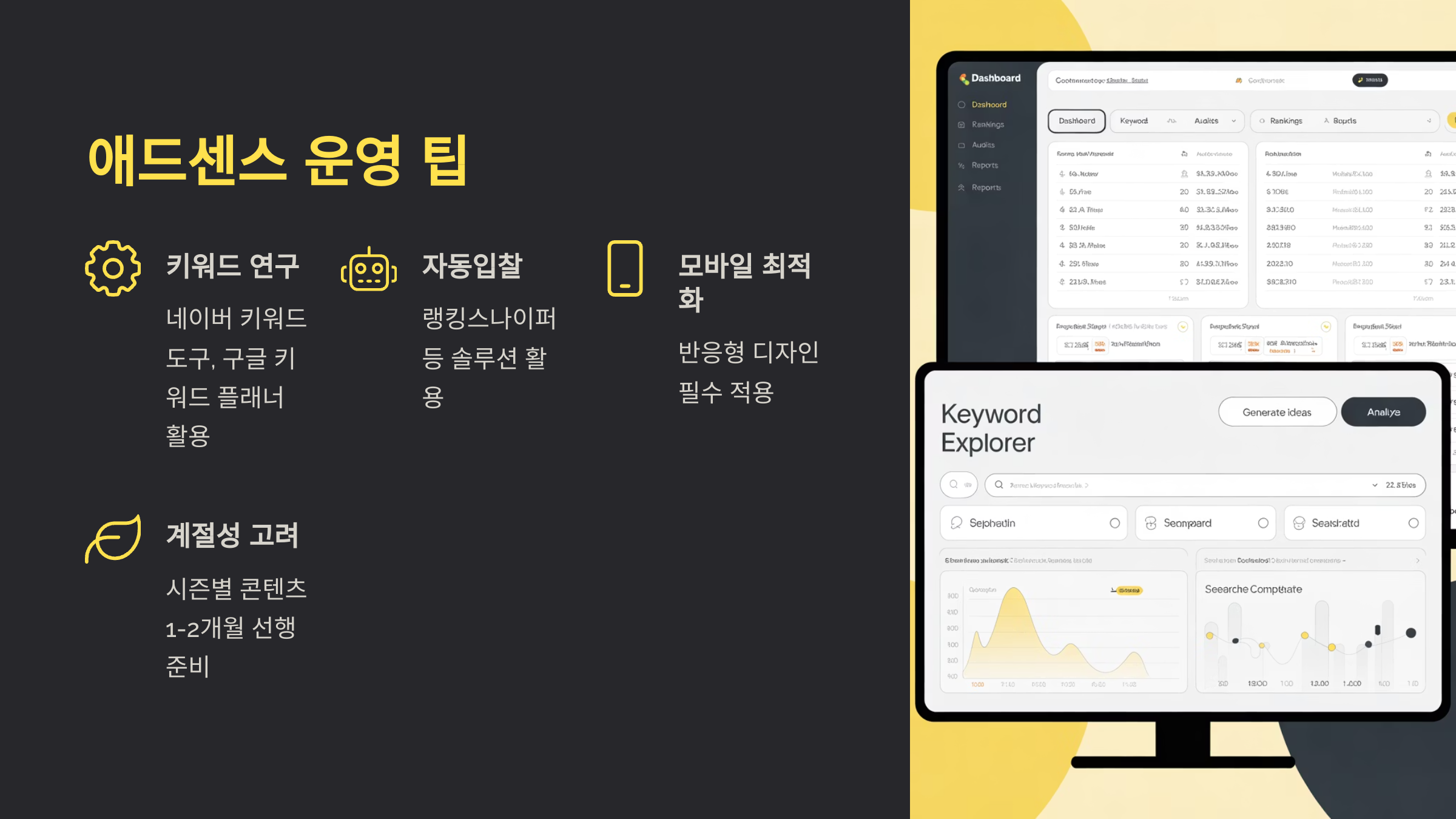 고단가 키워드를 알았다고 해서 곧바로 높은 수익이 발생하는 건 아니에요. 애드센스를 효율적으로 운영하려면 기술적인 세팅, 콘텐츠 관리, 트래픽 유입 전략까지 모두 맞춰줘야 해요. 지금부터 진짜 실전 팁을 알려줄게요!
