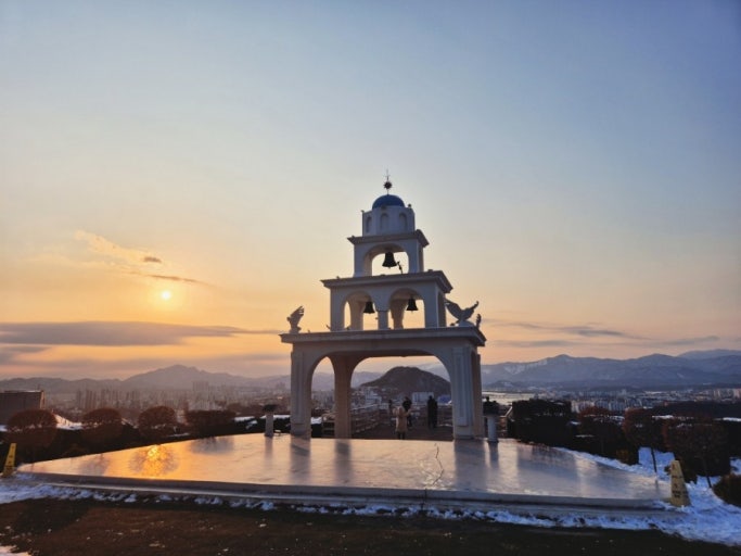 산토리니 카페는 그리스 산토리니를 모티브로 한 흰색과 파란색의 건물이 인상적인 곳으로, 구봉산 카페거리의 랜드마크가 되었습니다. 3층 규모의 카페 곳곳에 포토존이 마련되어 있으며, 옥상 테라스에서는 360도 전망을 감상할 수 있습니다. 특히 일몰 시간대에는 황금빛으로 물든 춘천의 풍경이 아름다워 많은 관광객이 찾습니다.