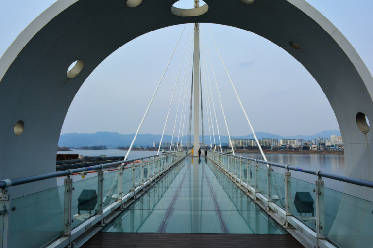 소양강 스카이워크는 2016년 개장한 국내 최장 유리다리로, 총 길이 174m, 폭 2.5m의 규모를 자랑합니다. 소양강 처녀상 옆에 위치한 이 투명 유리다리는 강화유리 3장을 겹쳐 만들어 안전성을 확보했으며, 성인 1,500명이 동시에 올라가도 견딜 수 있는 구조입니다. 다리 중앙부 156m 구간이 투명 유리로 되어 있어 발 아래로 소양강 물결을 직접 볼 수 있습니다.