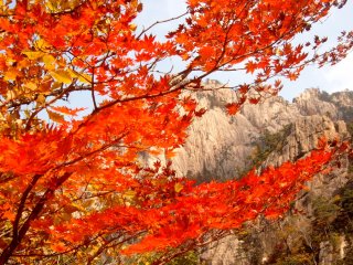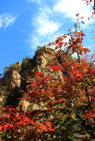 경사가 거의 없는 평탄한 계곡길이라 유모차나 휠체어도 일부 구간 접근이 가능할 정도입니다. 맑은 계곡물 소리를 들으며, 기암괴석과 어우러진 '애기단풍'의 붉은빛을 만끽할 수 있습니다. 10월 말 지금, 가장 화려한 모습을 보여줍니다.