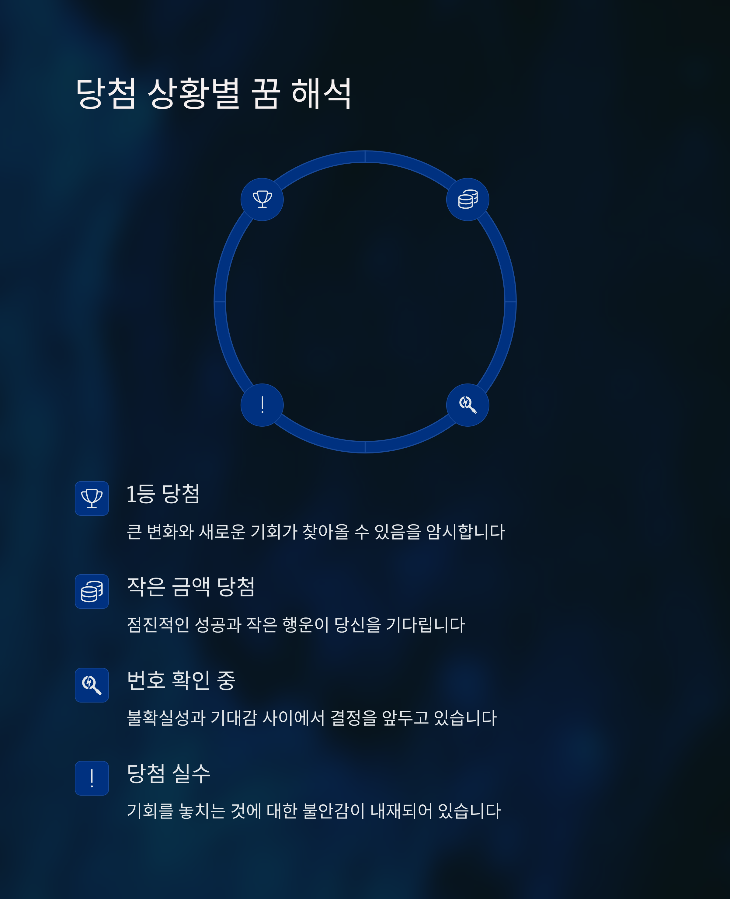 로또 당첨 꿈도 어떻게 당첨됐는지, 어떤 감정을 느꼈는지, 주변 상황이 어땠는지에 따라 해몽이 달라져요. 단순히 번호가 맞는 꿈과, 실제 복권 용지를 들고 환호하는 꿈은 완전히 다른 의미를 가지죠. 각각 어떤 메시지를 담고 있는지 알아볼게요.